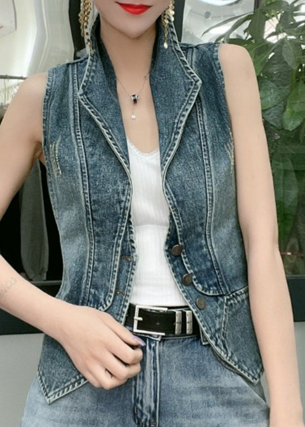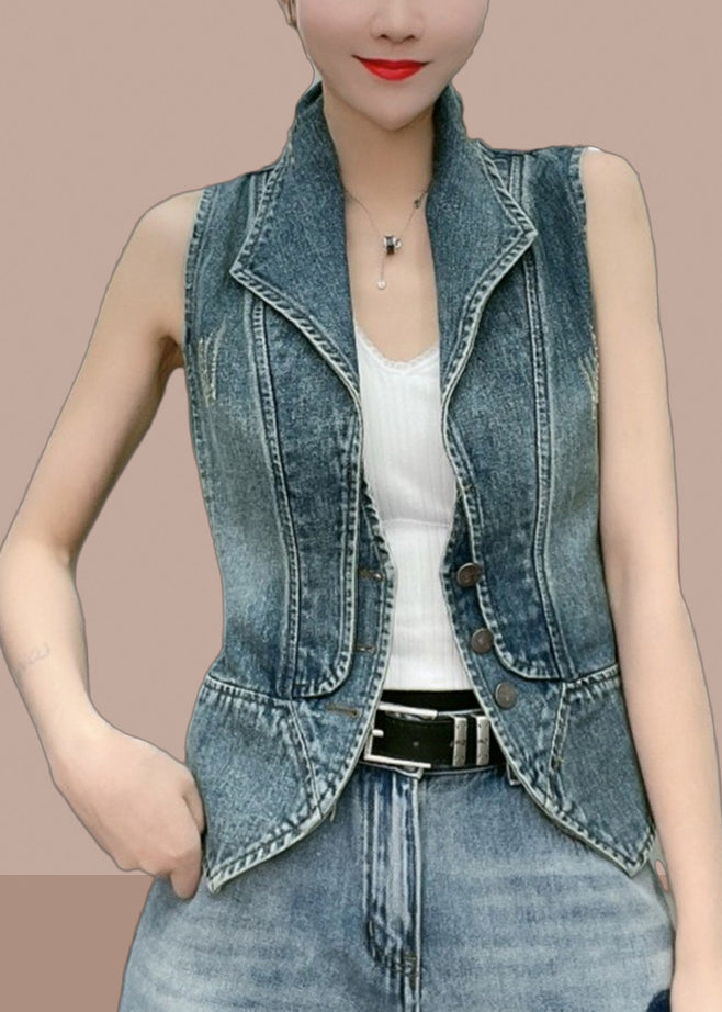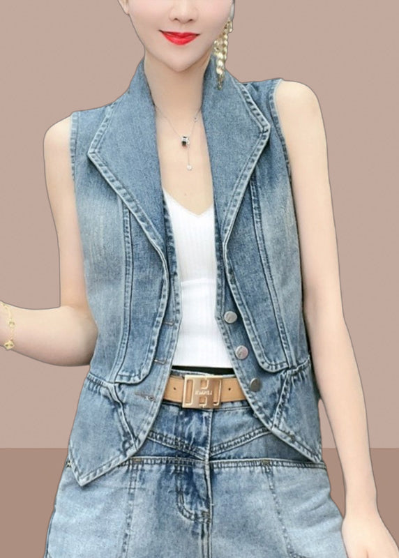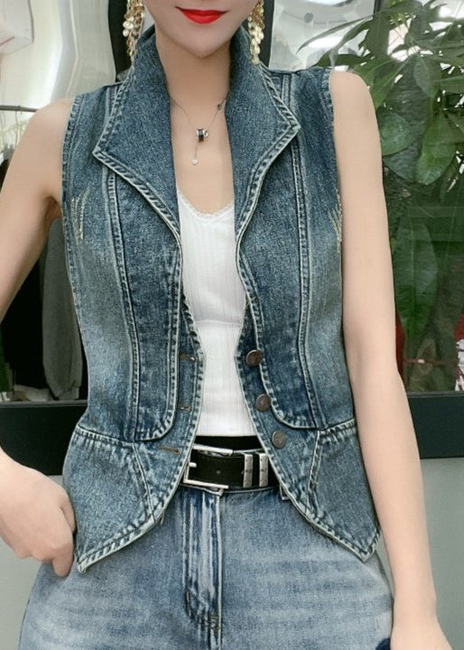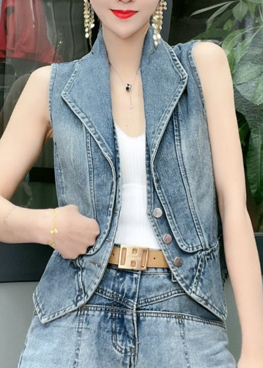 Natural Blue Peter Pan Collar Patchwork Denim Vest Sleeveless