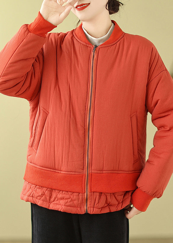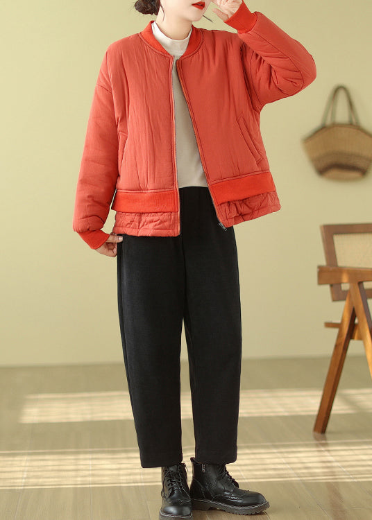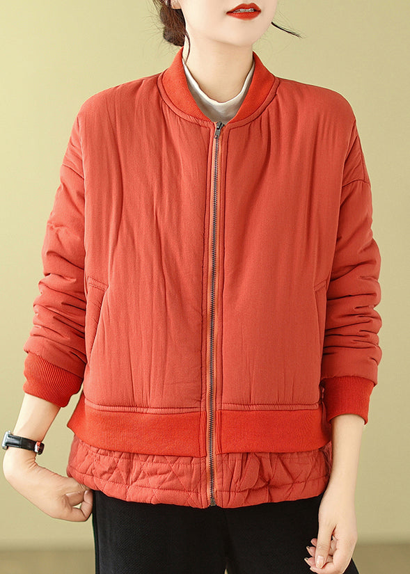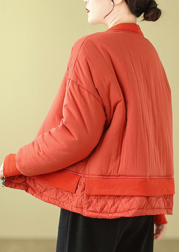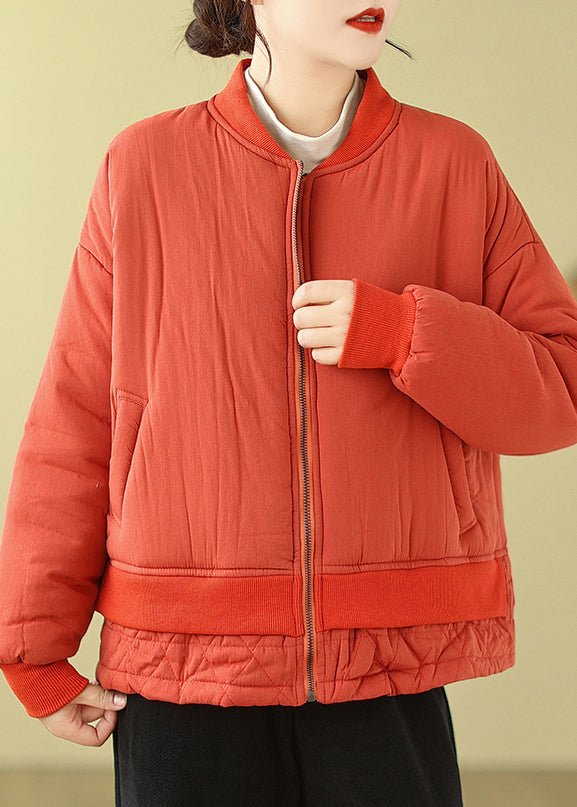 Simple Orange Oversized Patchwork Fine Cotton Filled Women Witner Coats