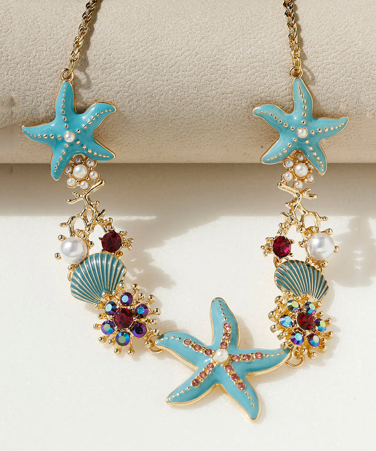Fashion Blue Sterling Silver Overgild Enamel Zircon Shell Pearl Pendant Necklace
