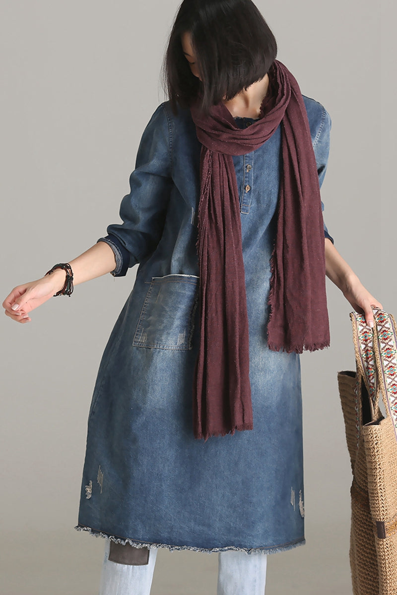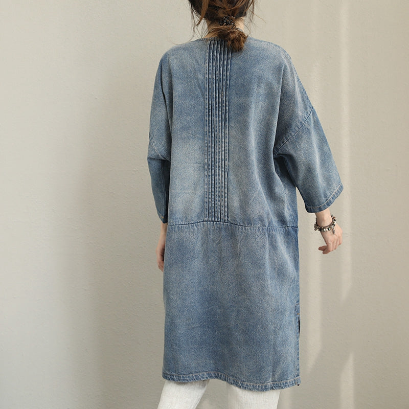 Vintage Casual Blue Denim Dresses Women Clothes