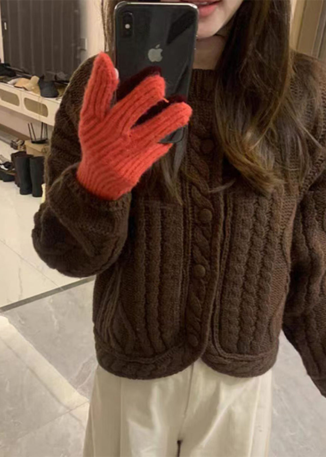 Art Yellow O-Neck Button Cozy Knit Cardigans Fall