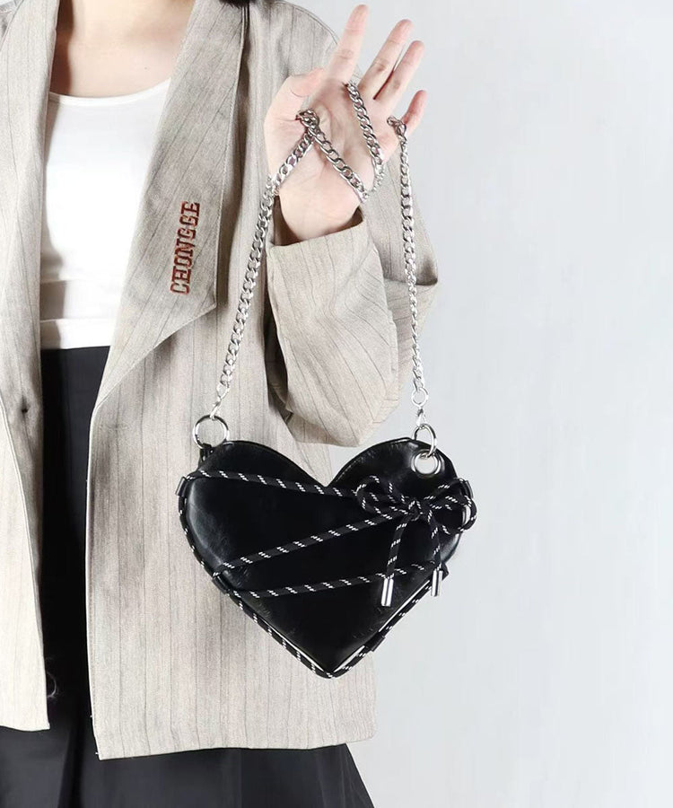 Beautiful Black Love Shaped Faux Leather Cross-body Bags