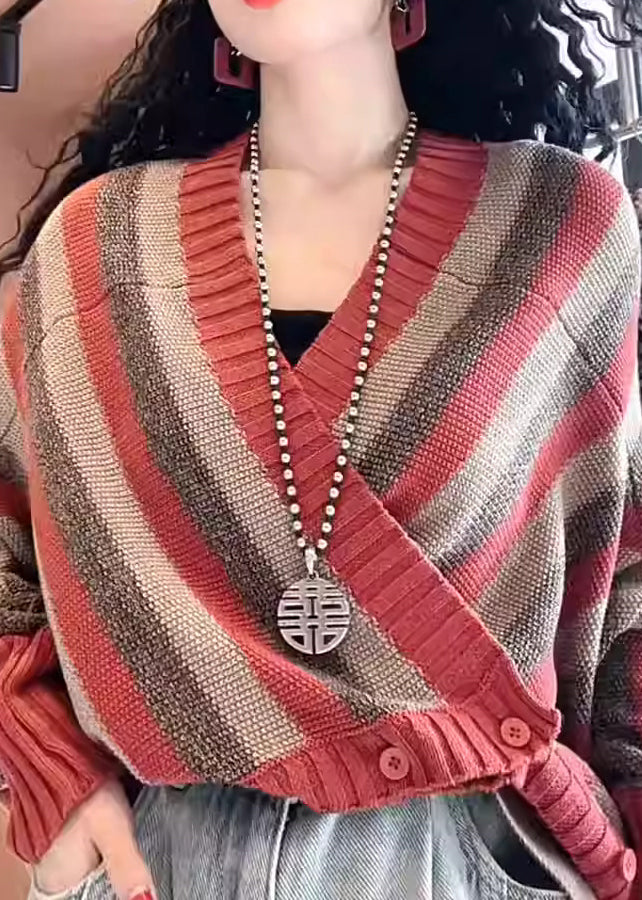 French Coffee V Neck Button Hollow Out Knit Cardigans Fall