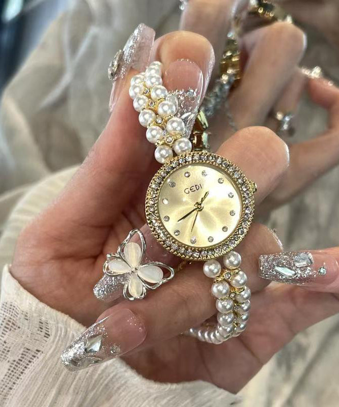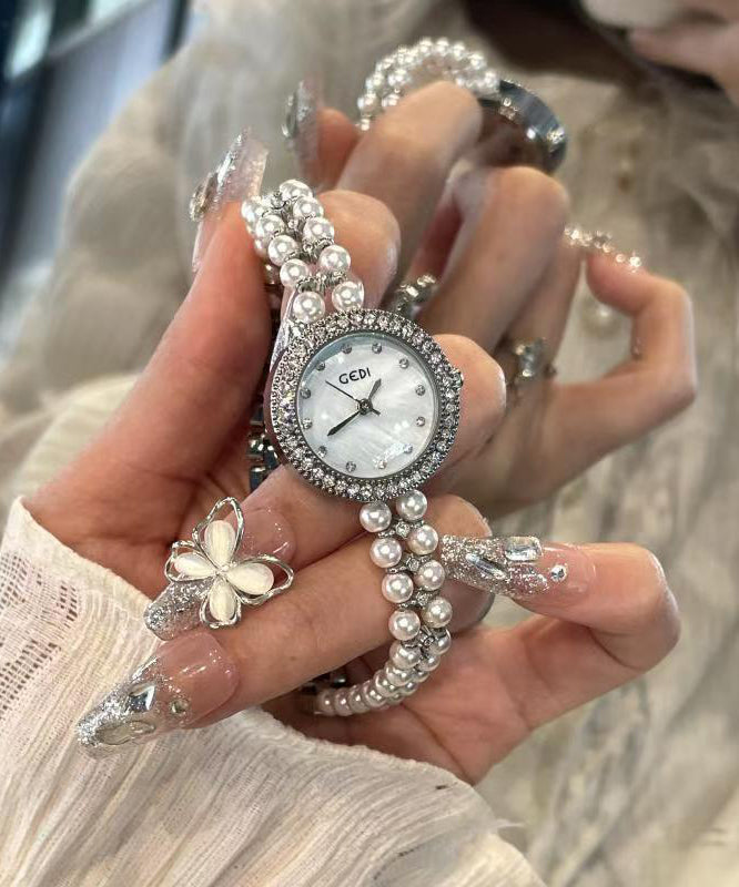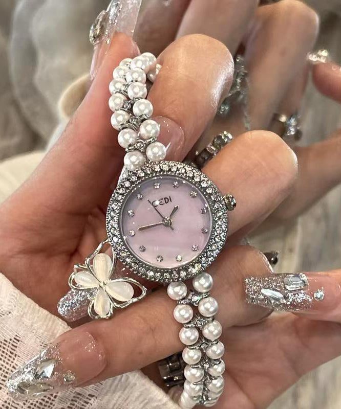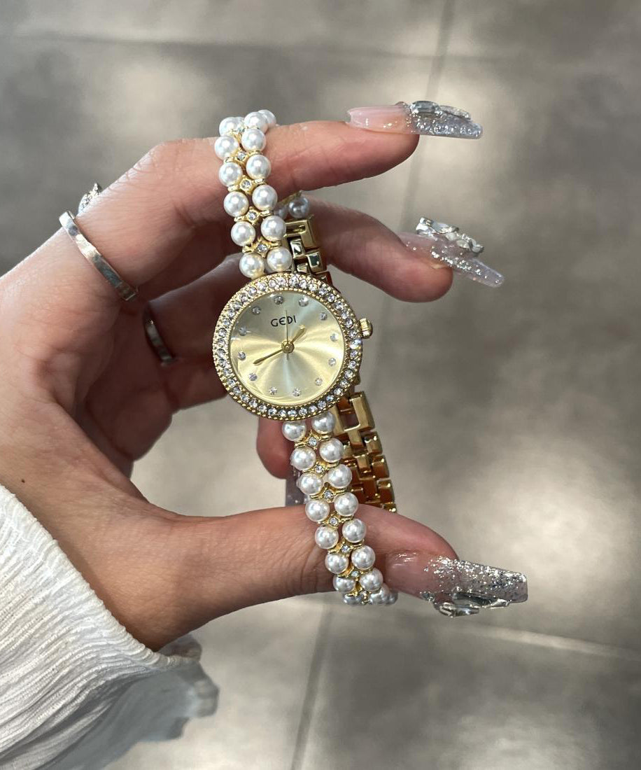 Elegant Blue Stainless Steel Pearl Reinforced Glass Quartz Movement Watches
