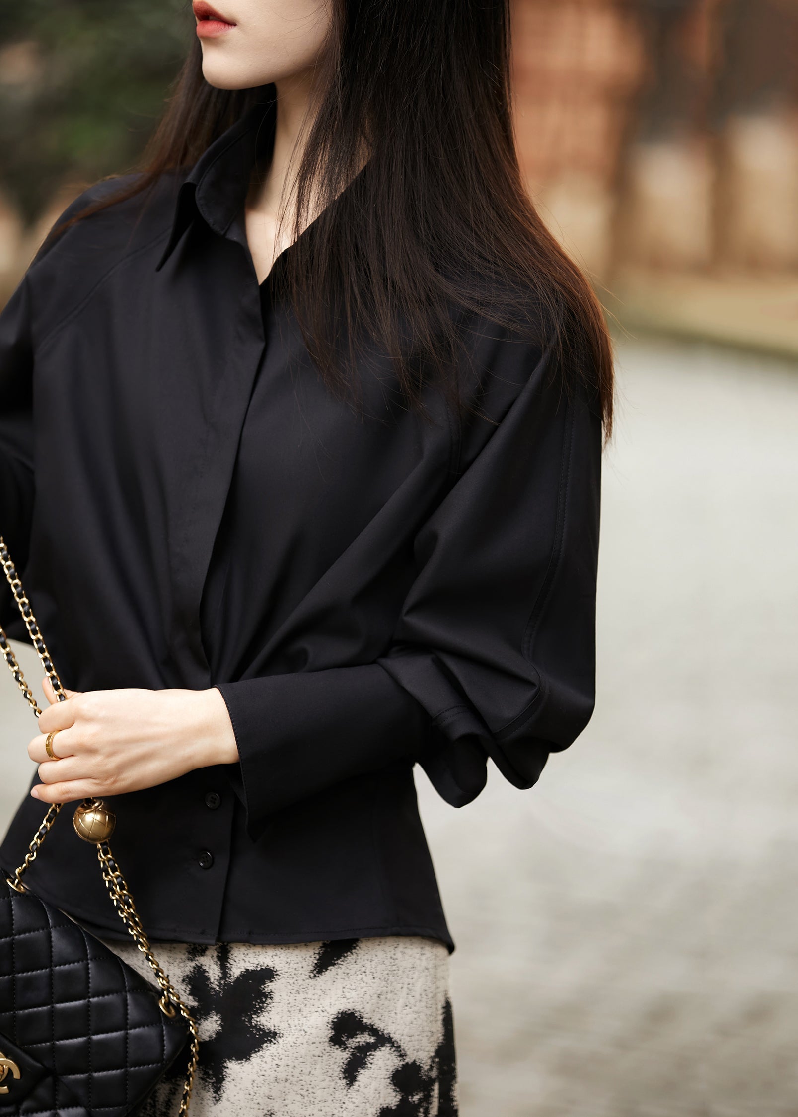 Loose Coffee Wrinkled Lace Up Silk Velour Shirt Fall