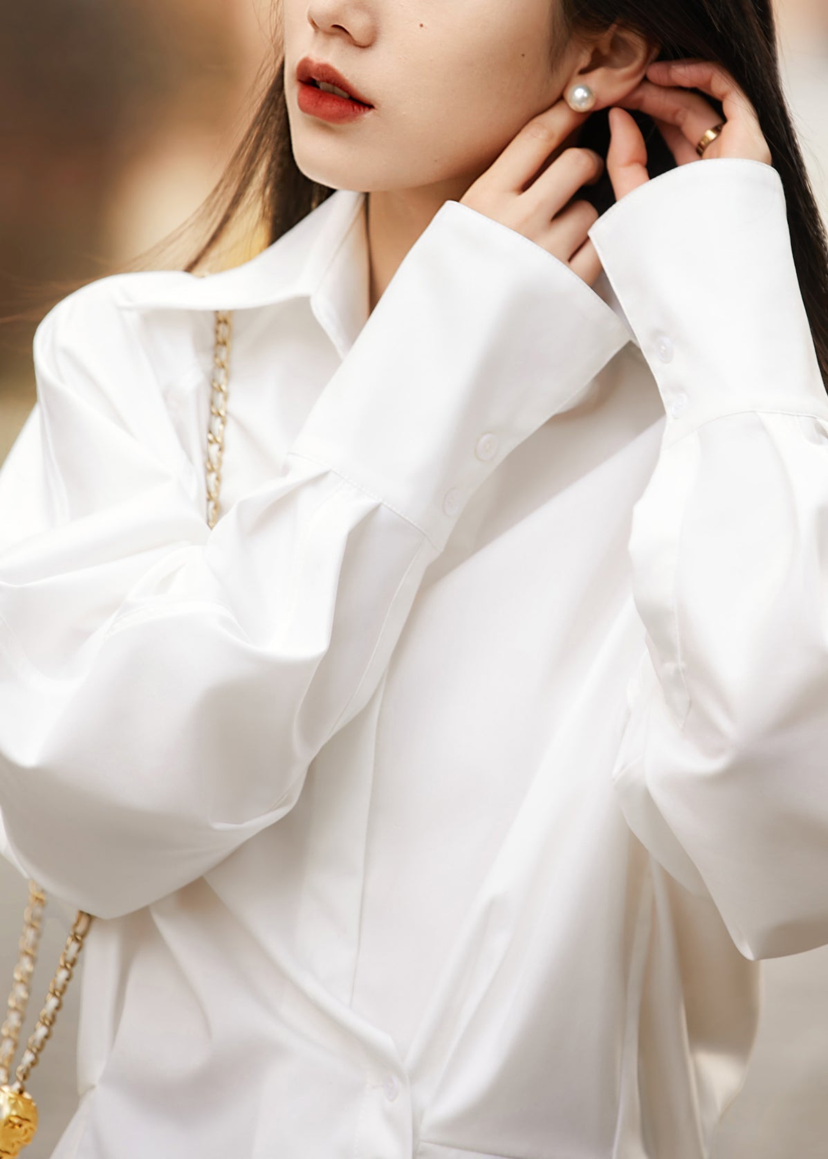 Slim Fit White Peter Pan Collar Button Cotton Shirt Fall