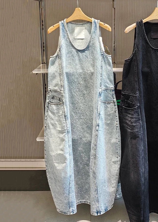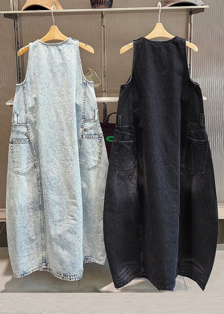 Vintage Black Original Design Pockets Long Dress Sleeveless