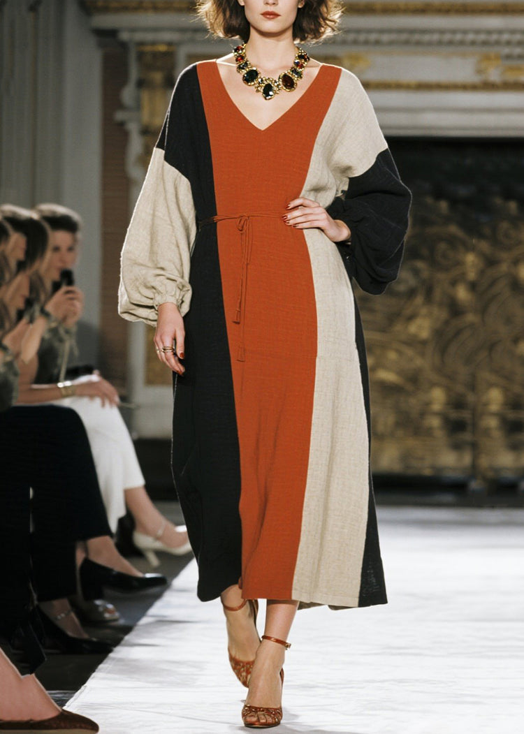 Chic Colorblock Tie Waist Asymmetrical Design Cotton Dresses Spring