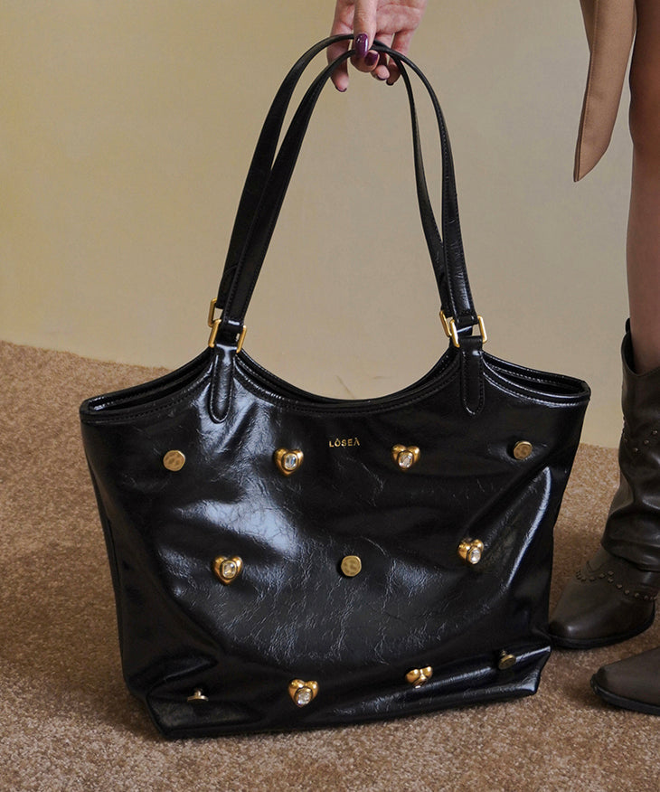 Boutique Black Zircon Patchwork Faux Leather Tote Handbag