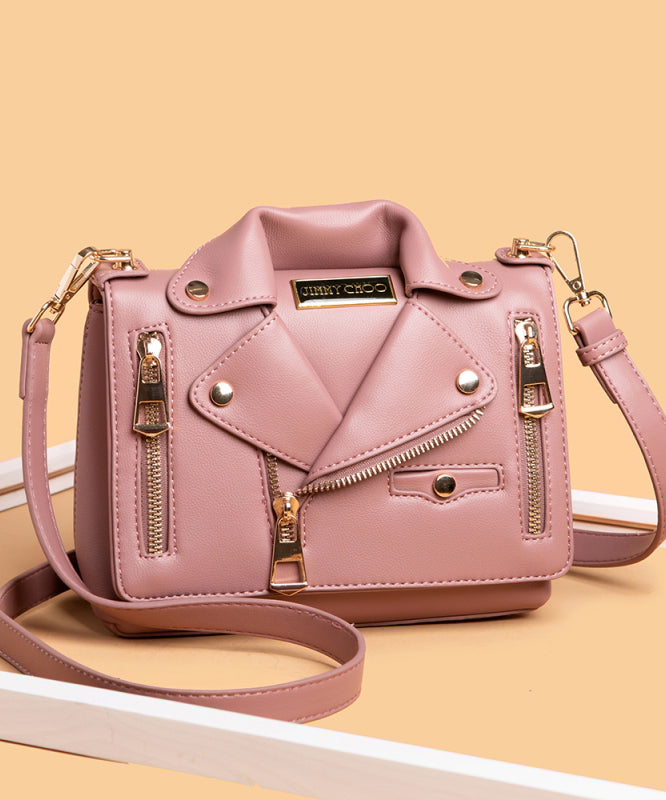 Original Design Pink Heart Zippered Patchwork Faux Leather Messenger Bag