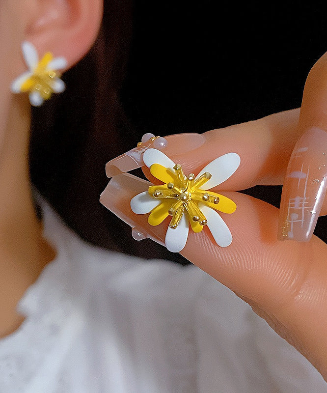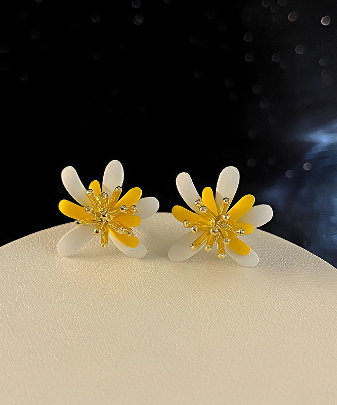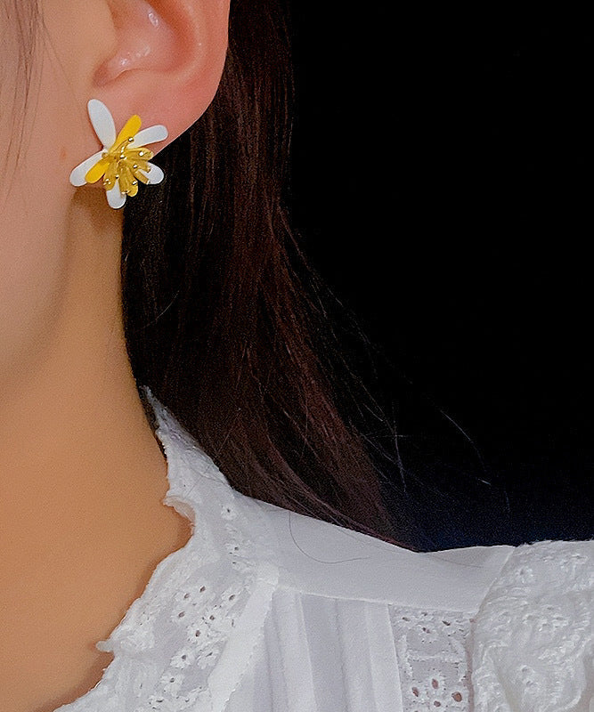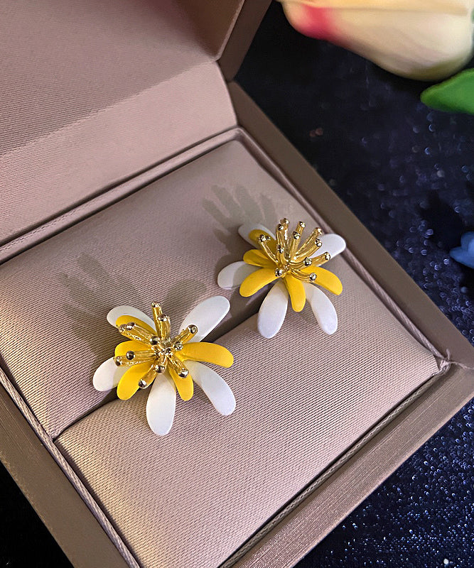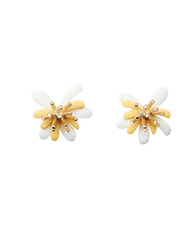 Modern Colorblock Copper Overgild Floral Stud Earrings