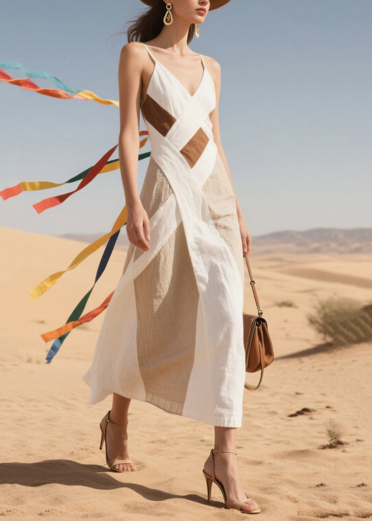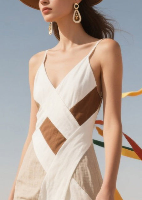 Art Colorblock Asymmetrical Patchwork Cotton Mini Dress Summer