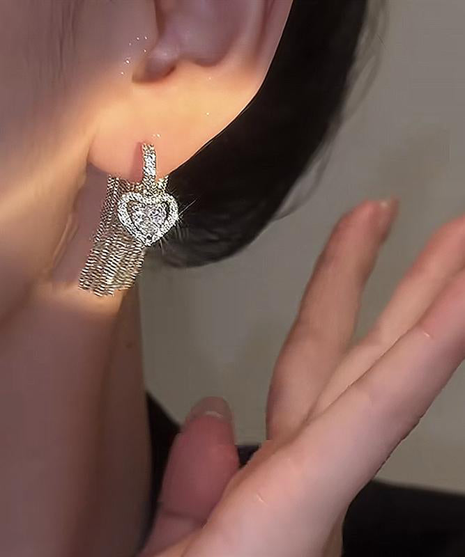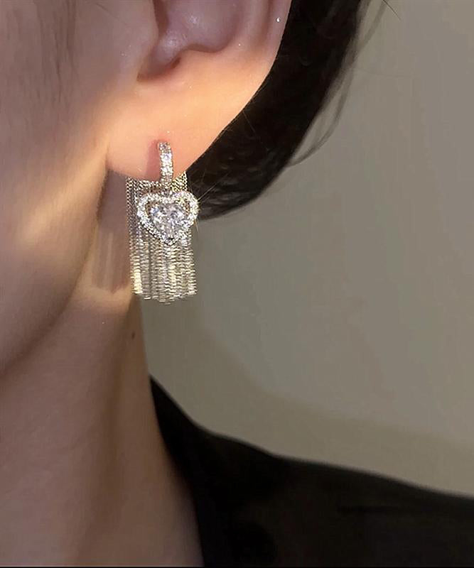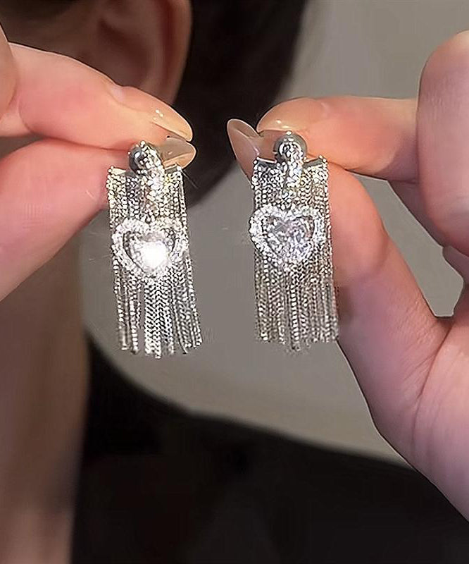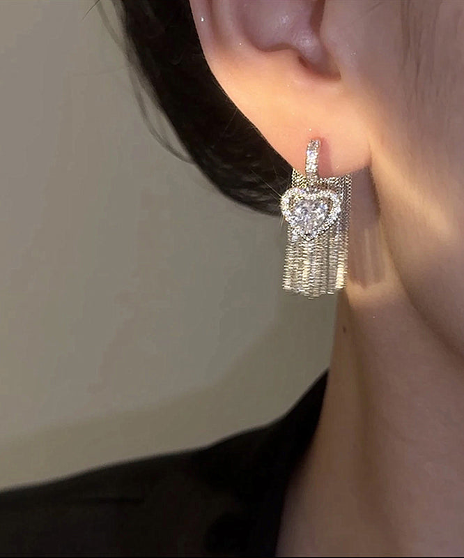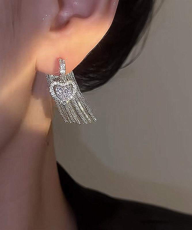 Boho Copper Alloy Zircon Love Tassel Drop Earrings