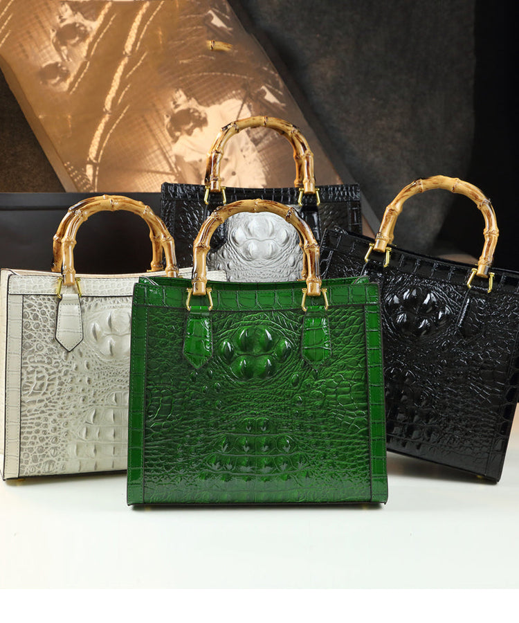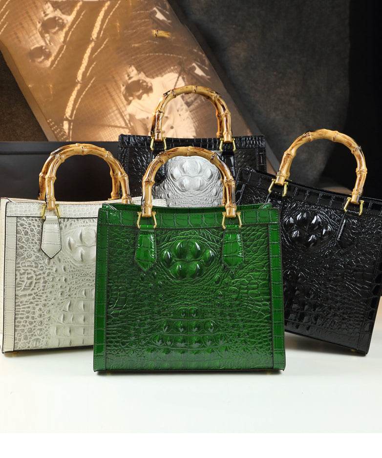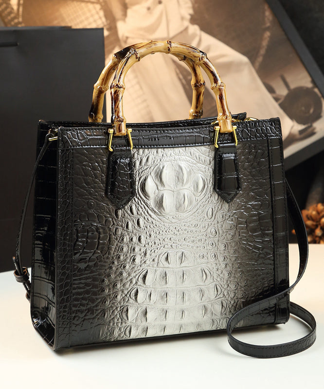 Boho Gradient Color Alligator Pattern Faux Leather Tote Handbag