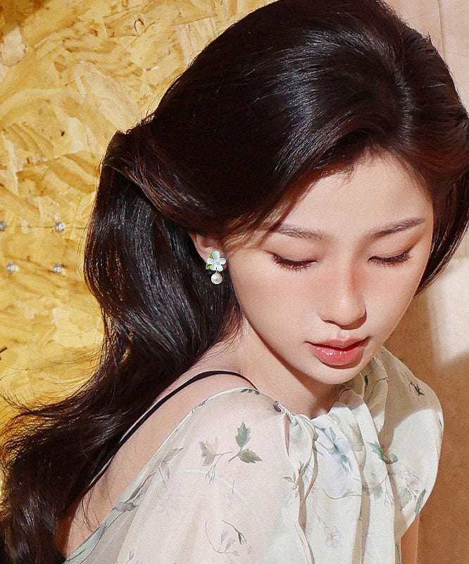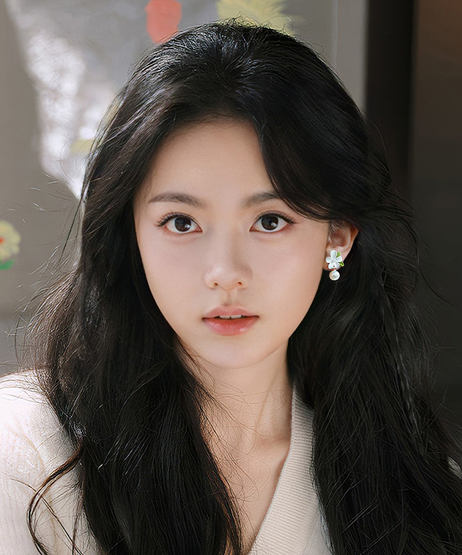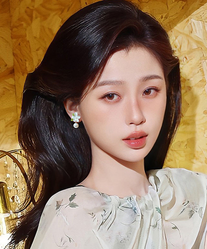 Classy White Alloy Pearl Floral Drop Earrings