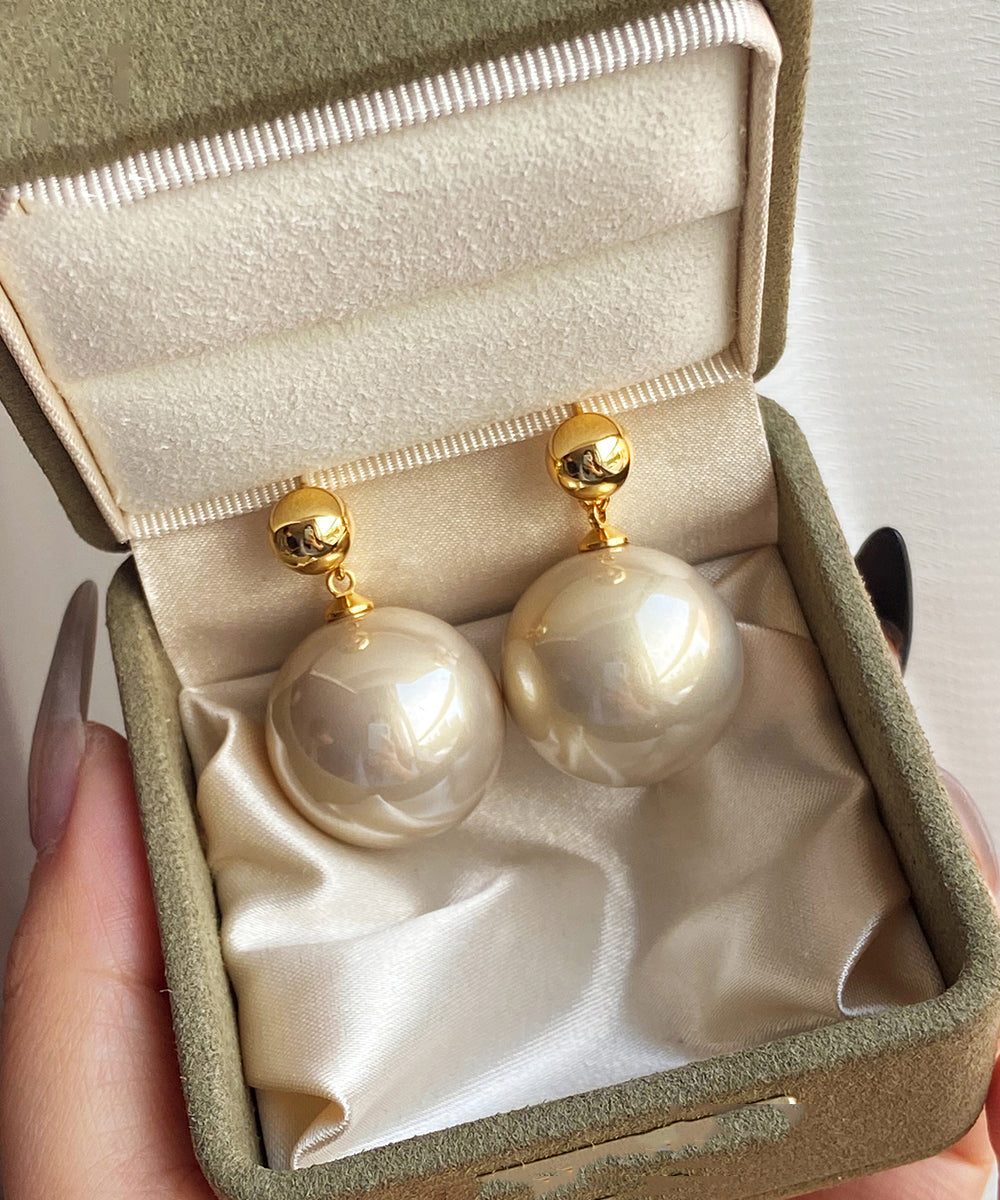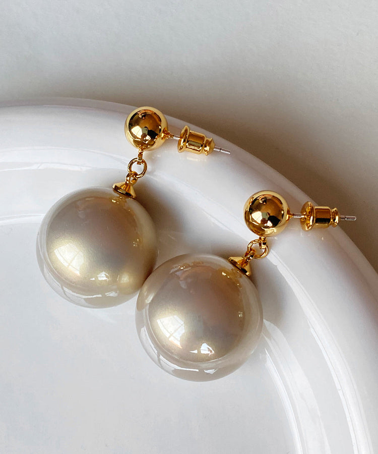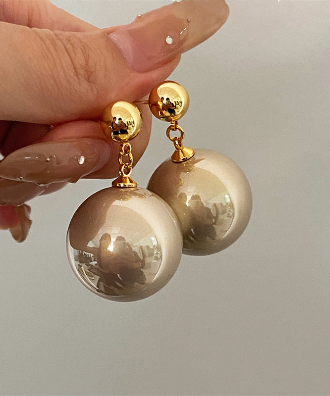 Elegant Champagne Metal Overgild Pearl Drop Earrings