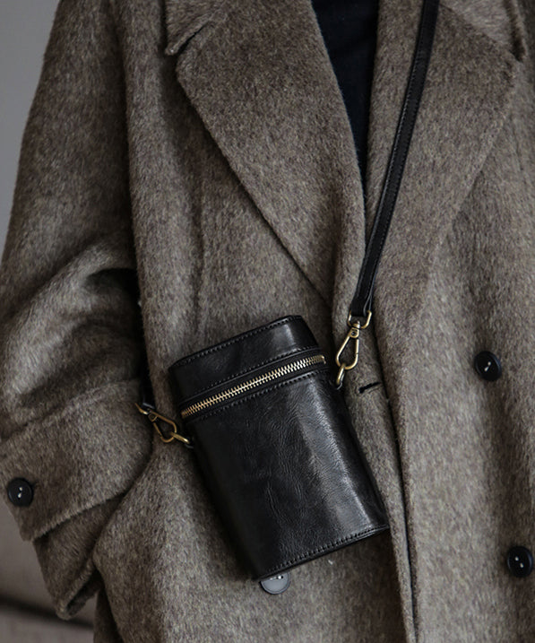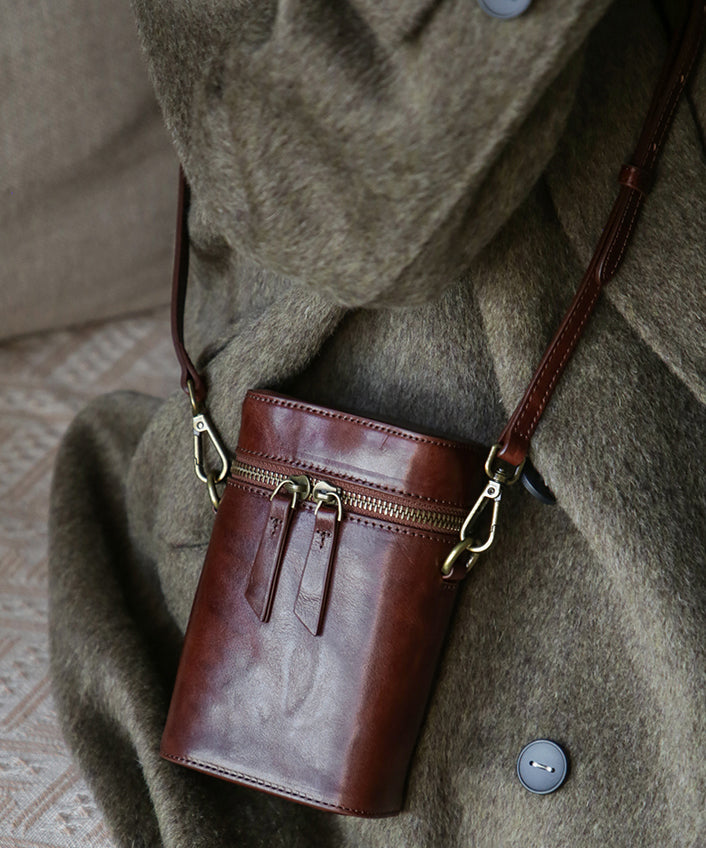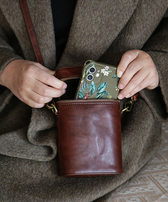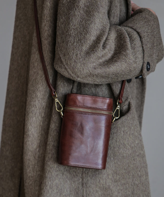 Handmade Coffee Solid Durable Calf Leather Phone Pouch