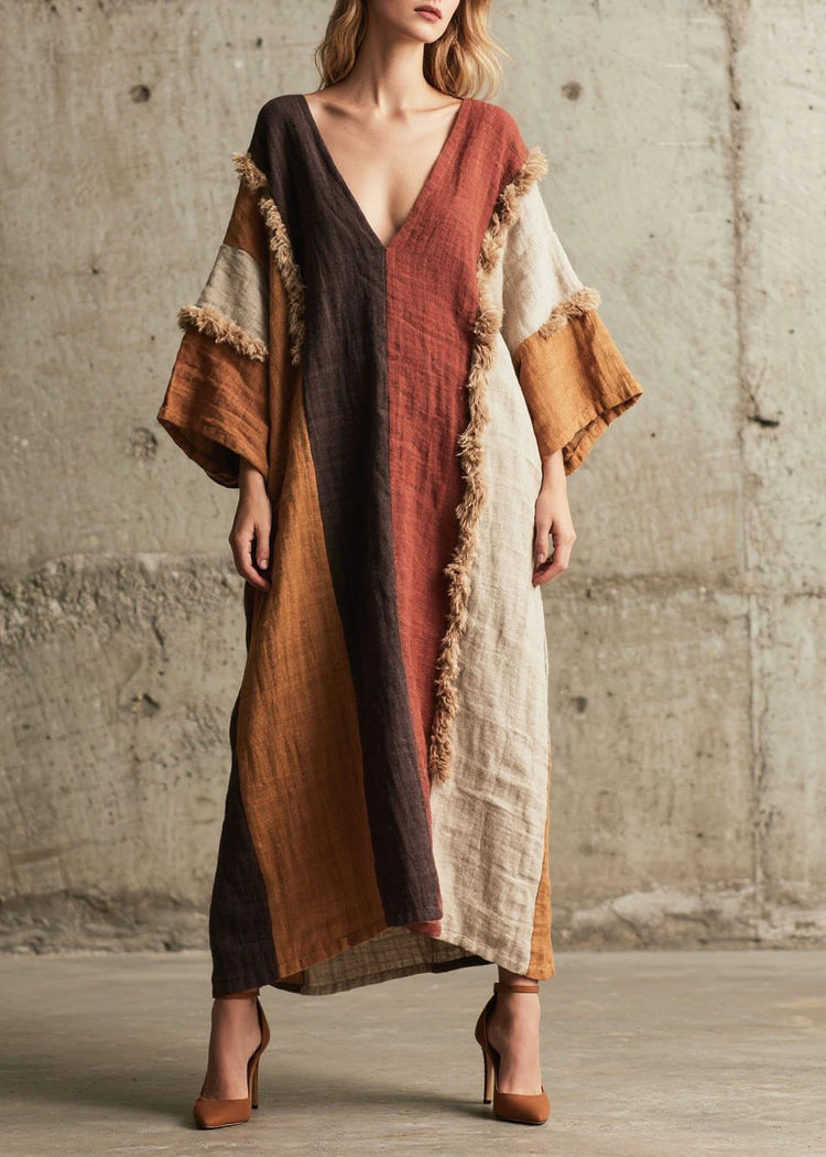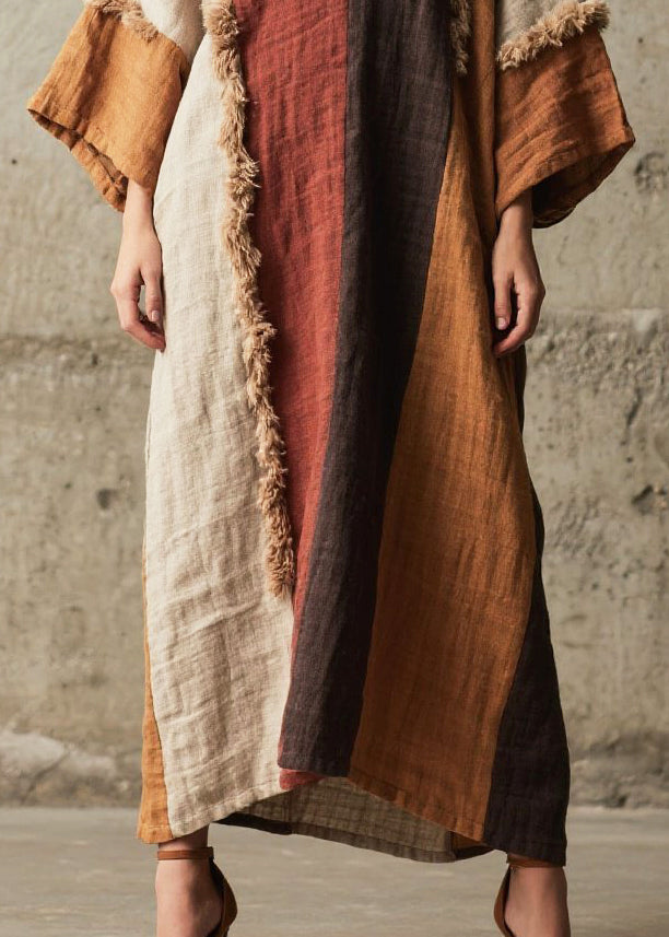 Loose Colorblock Asymmetrical Patchwork Faux Fur Dress Fall