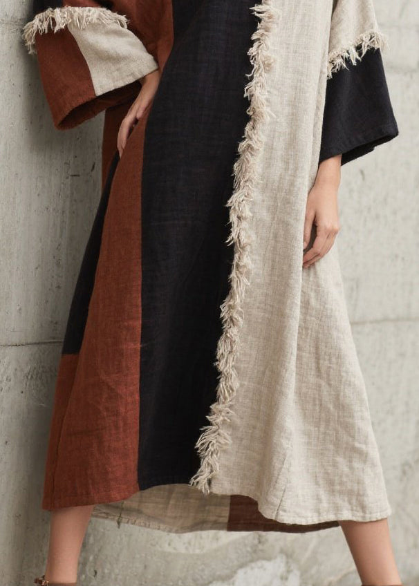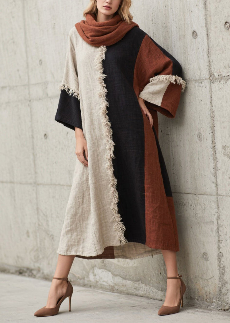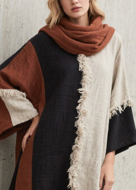 Mixed Color Patchwork Faux Fur Vacation Dress Asymmetrical Fall