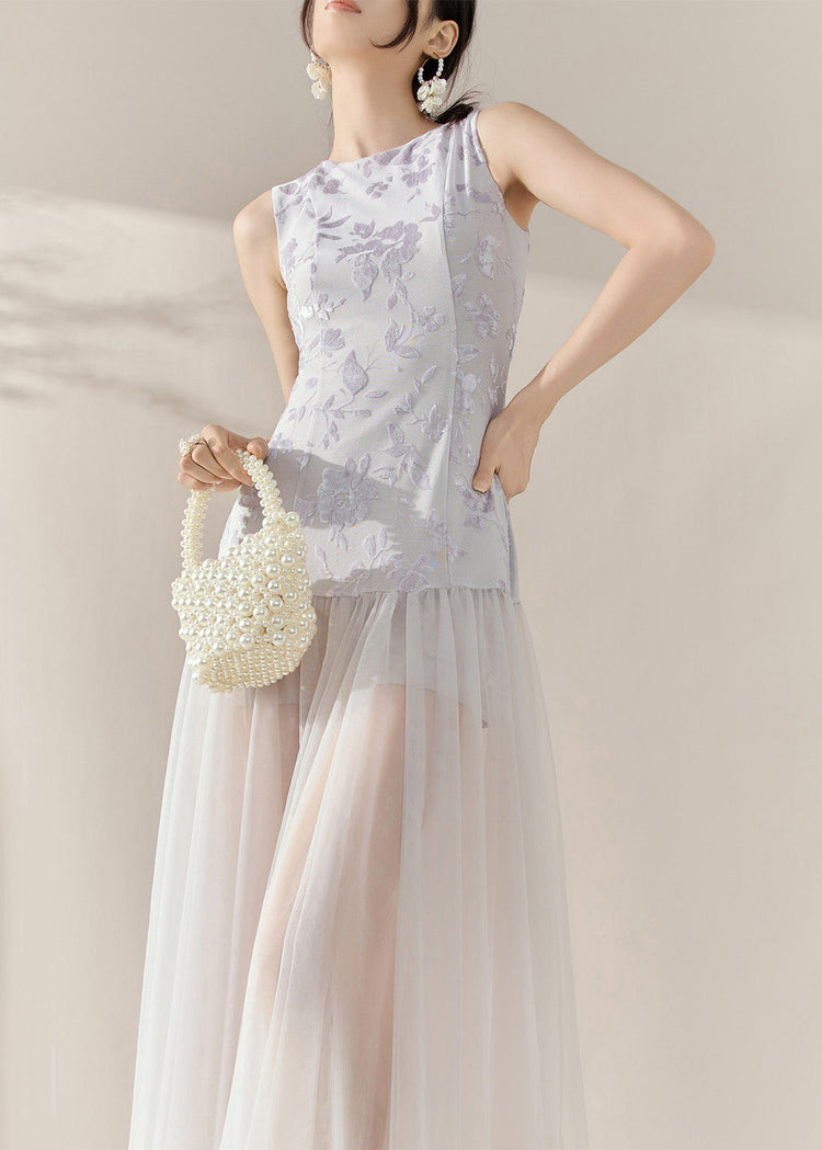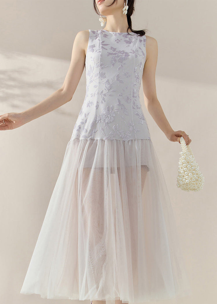 Natural Colorblock Print Tulle Patchwork Long Dress Sleeveless