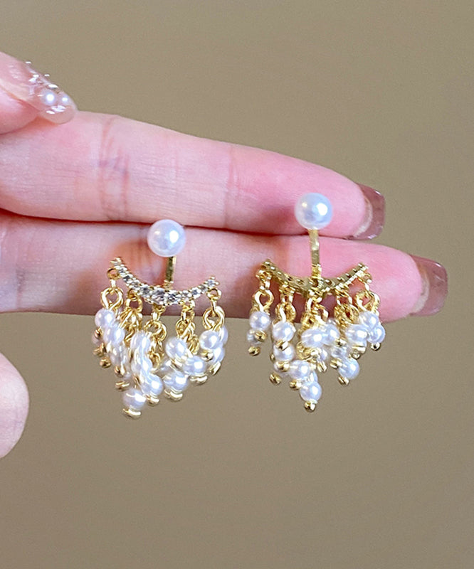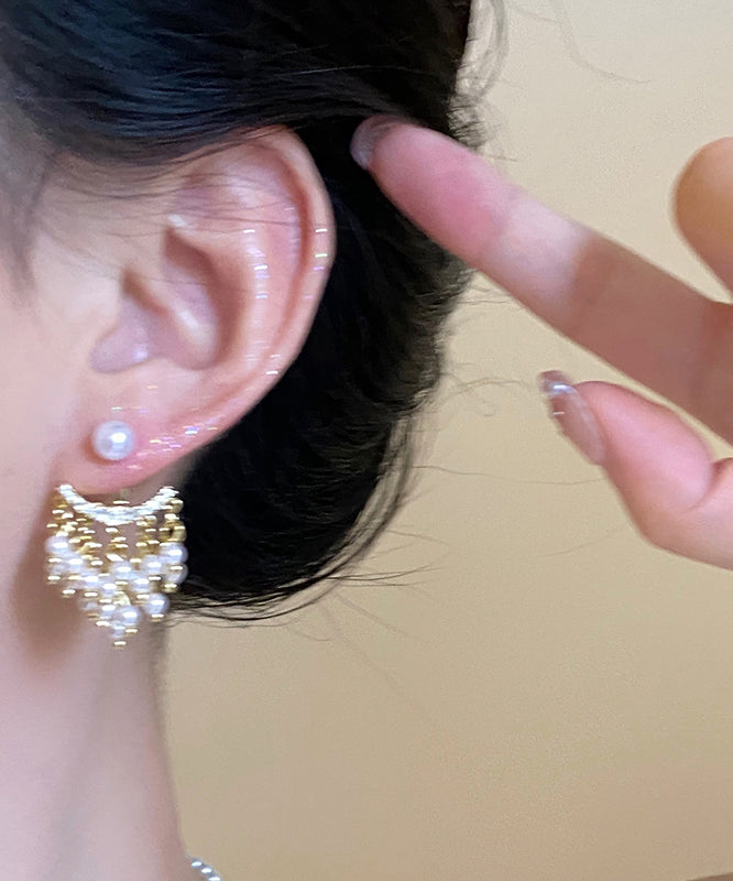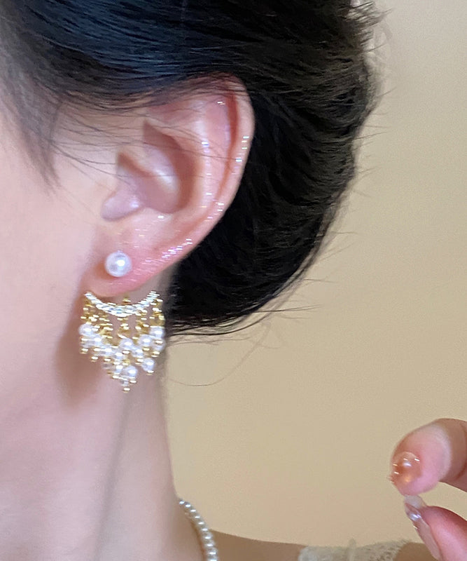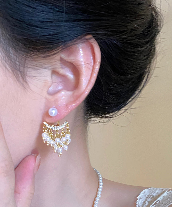 Novelty Gold Copper Zircon Pearl Tassel Drop Earrings