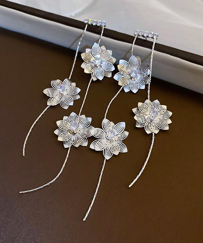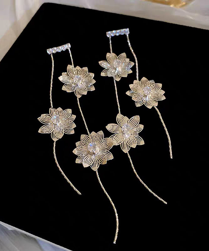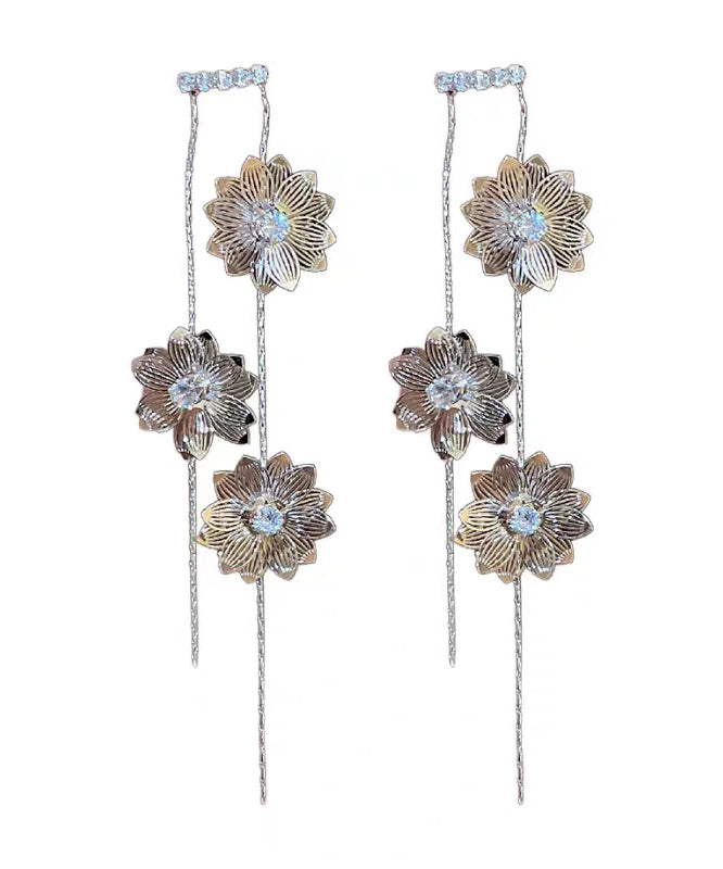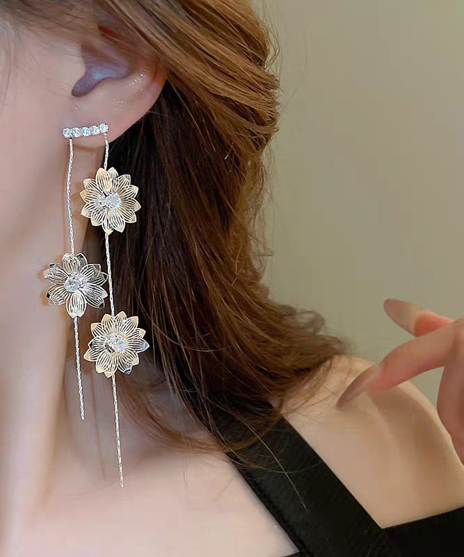 Skinny Silk Copper Zircon Floral Tassel Drop Earrings