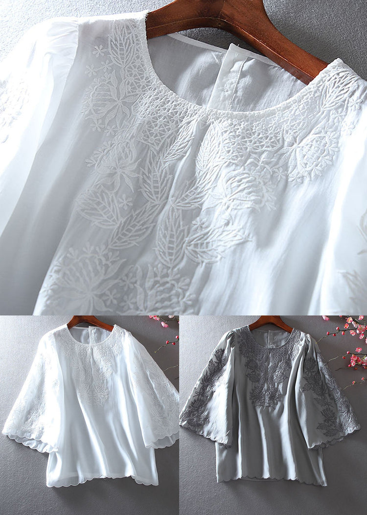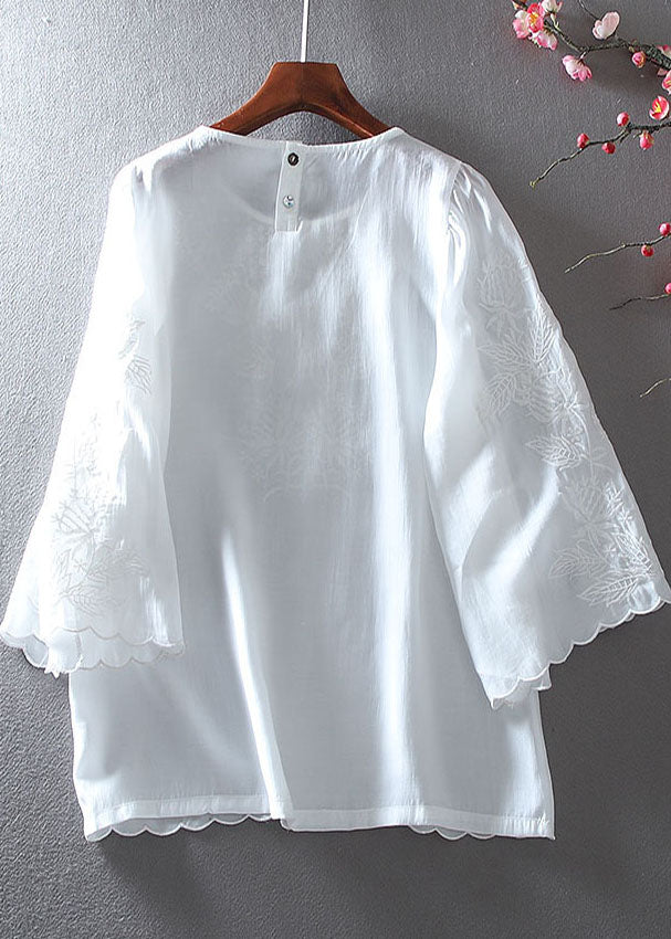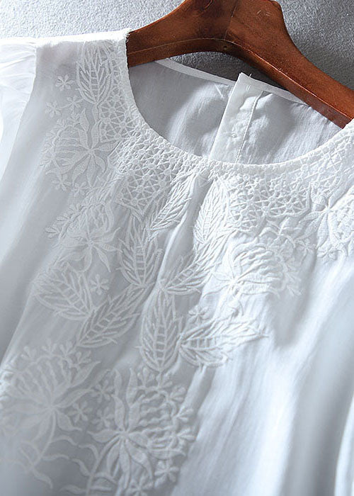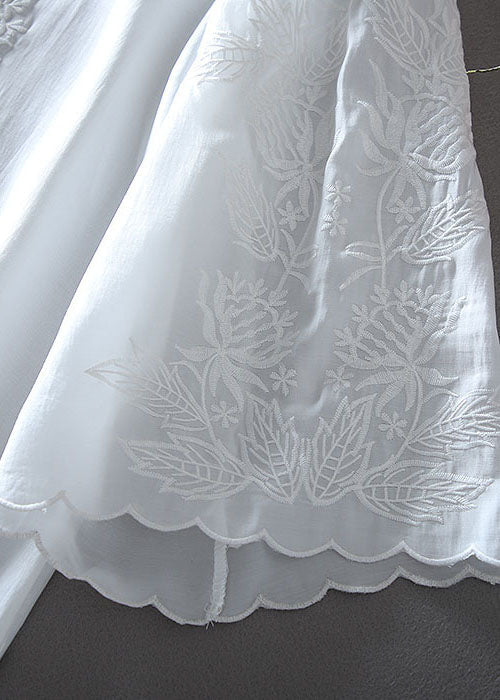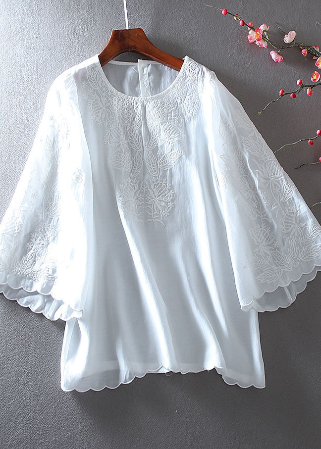 Vintage White Embroidered Chiffon Shirt Tops Summer