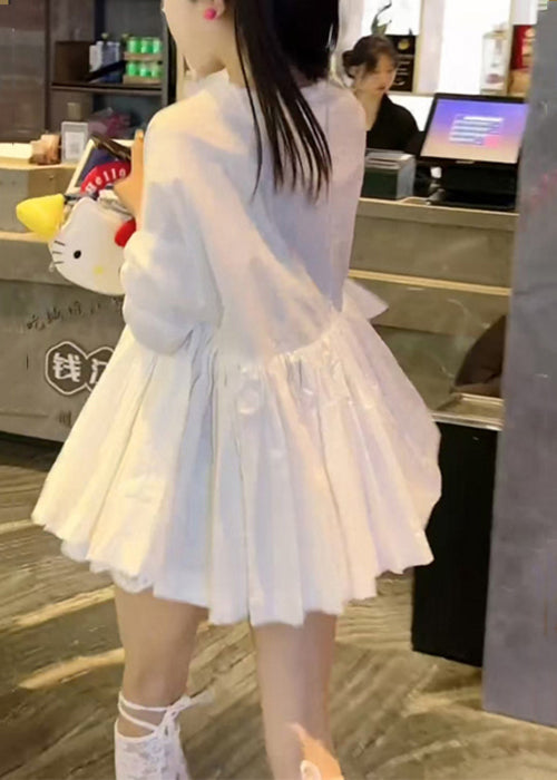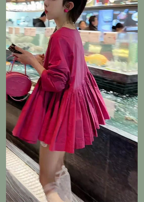 Women Rose O Neck Wrinkled Solid Cotton Shirts Fall