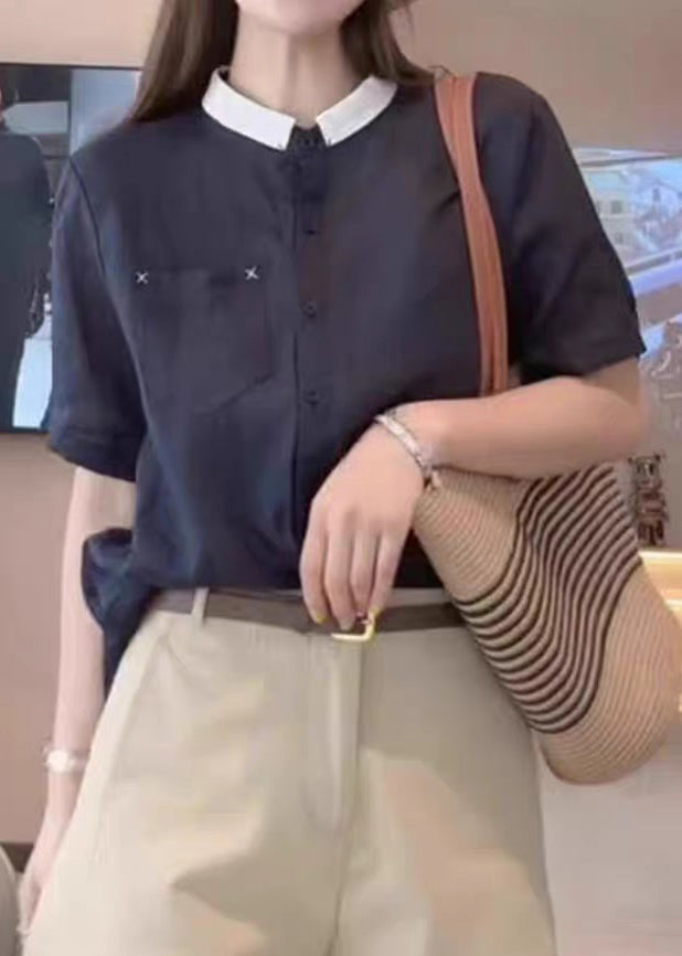 Stylish Rose Pearl Tie Waist Cotton Tops Summer