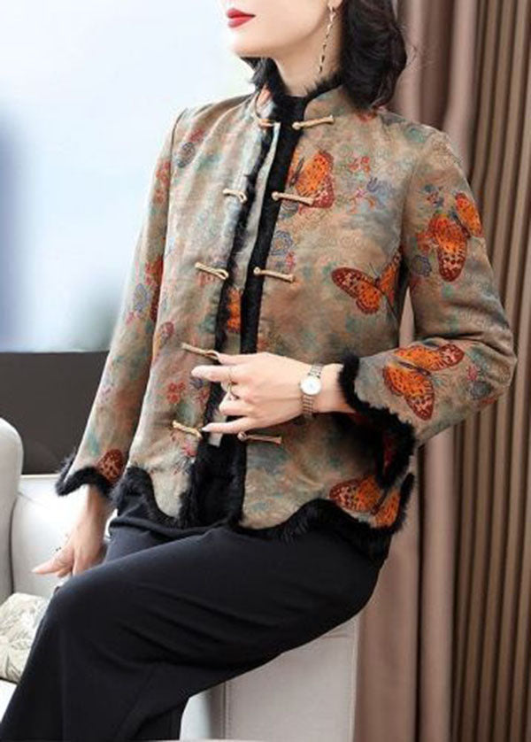 Vintage Rabbit Hair Collar Print Fine Cotton Filled Jackets Winter