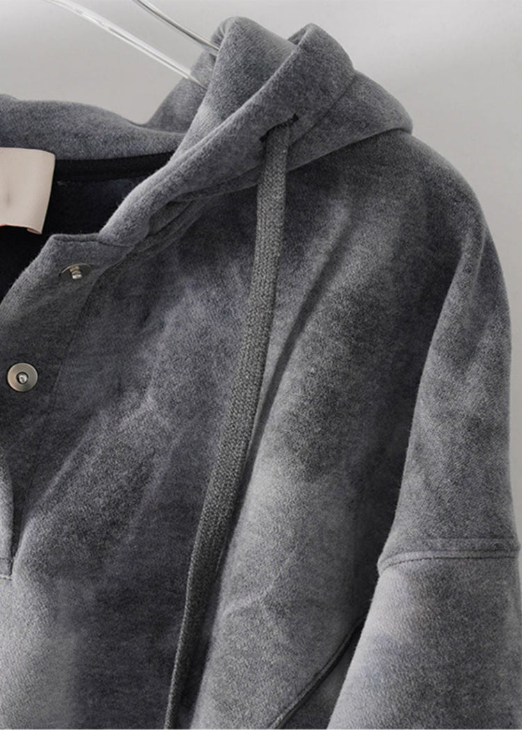 Casual Grey Tie Dye Drawstring Hooded Sweatshirts Top Fall
