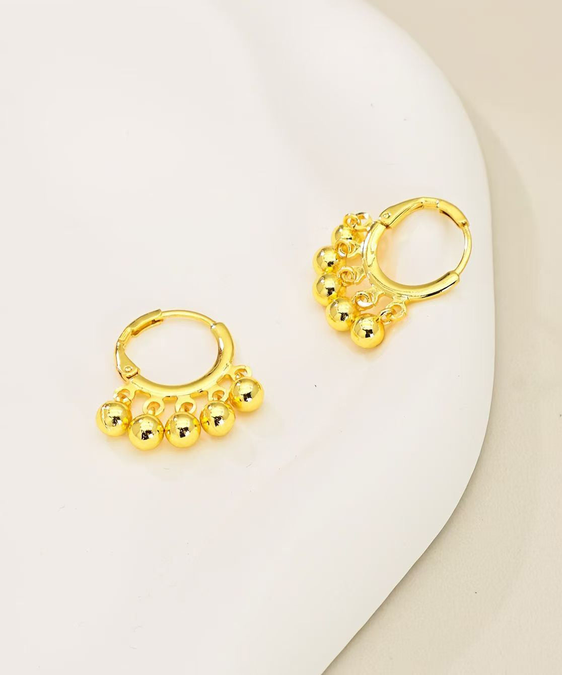 Art Gold Copper Overgild Ball Tassel Hoop Earrings