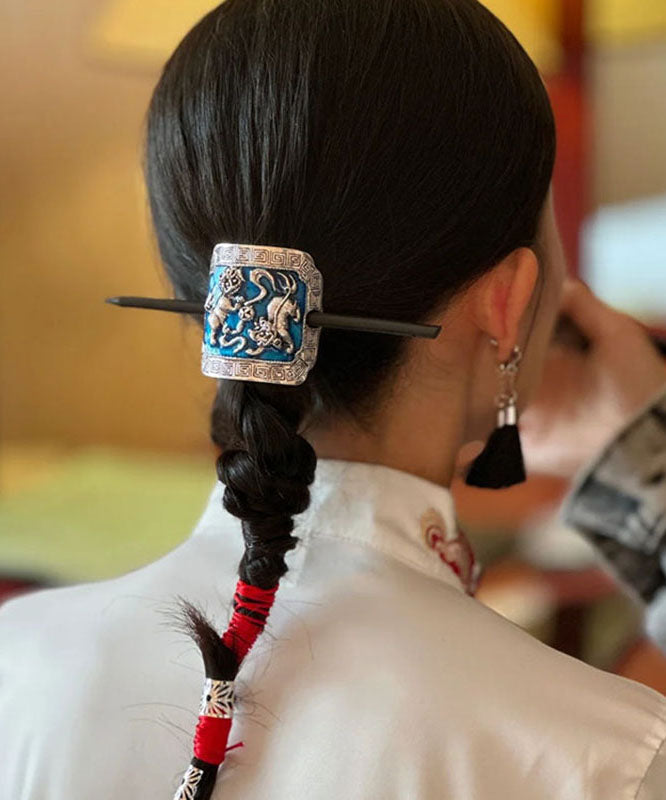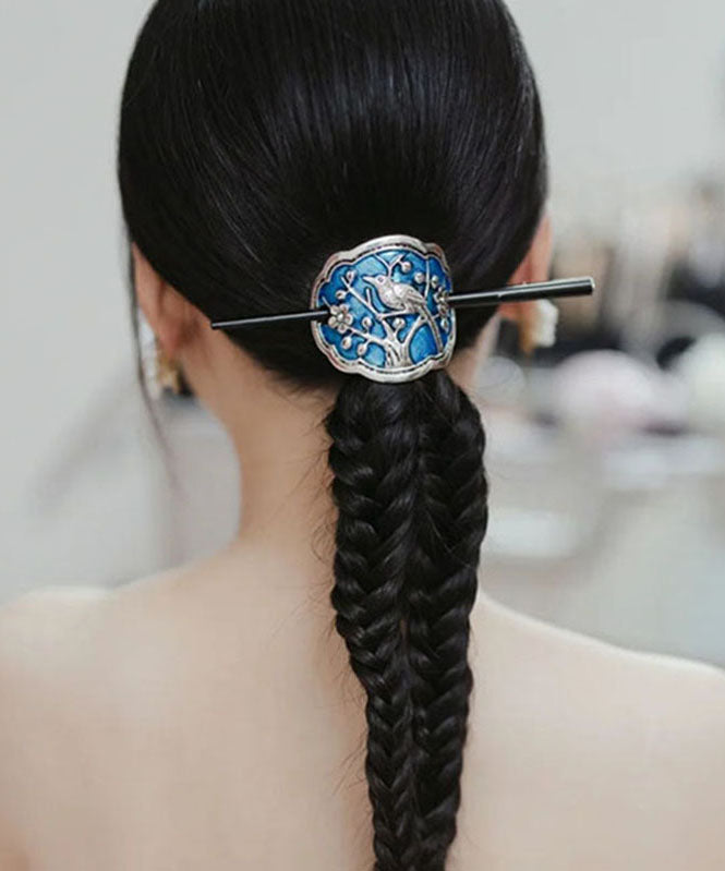 Vintage Magpie Sterling Silver Cloisonne Enamel Hairpin