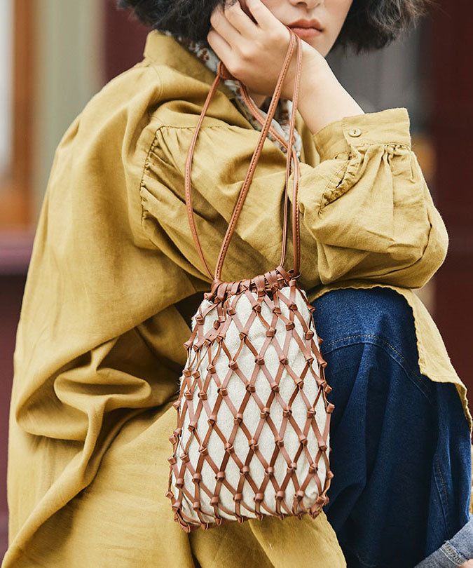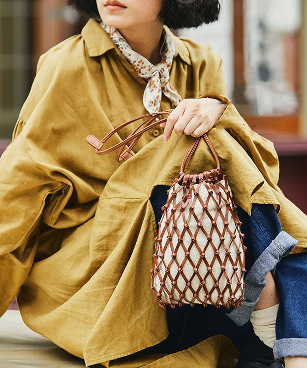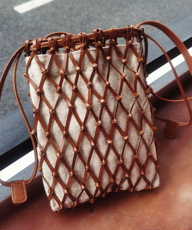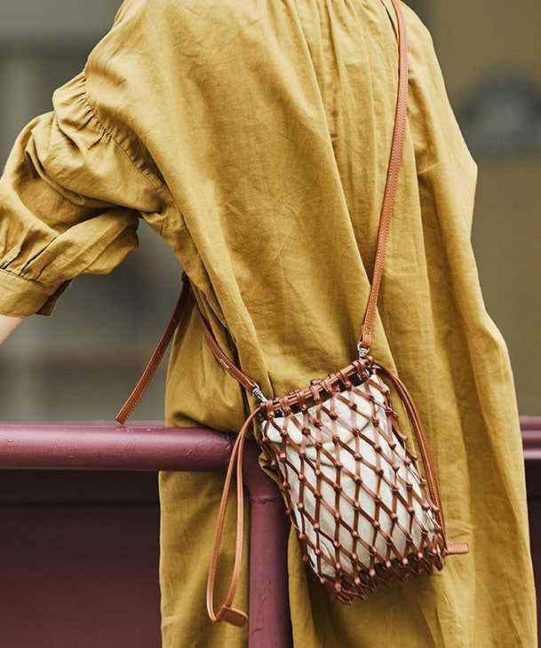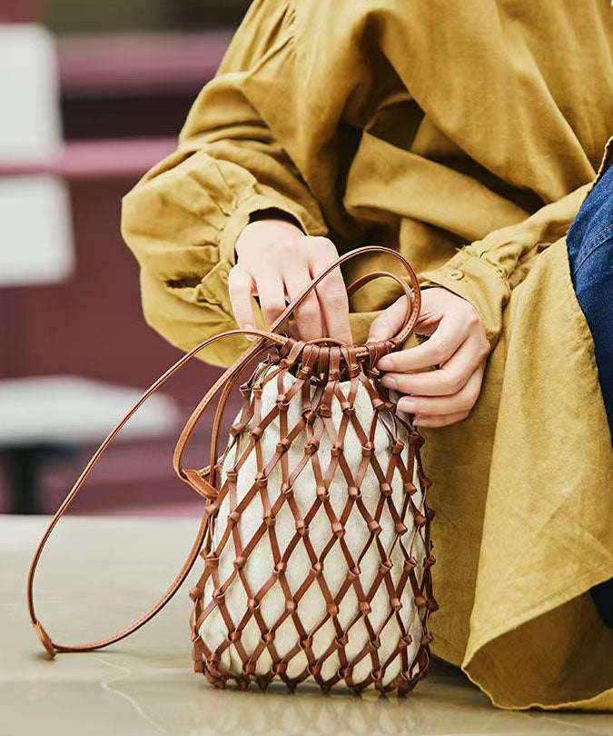 Handmade Brown Weave Hollow Out Leather Coin Purse