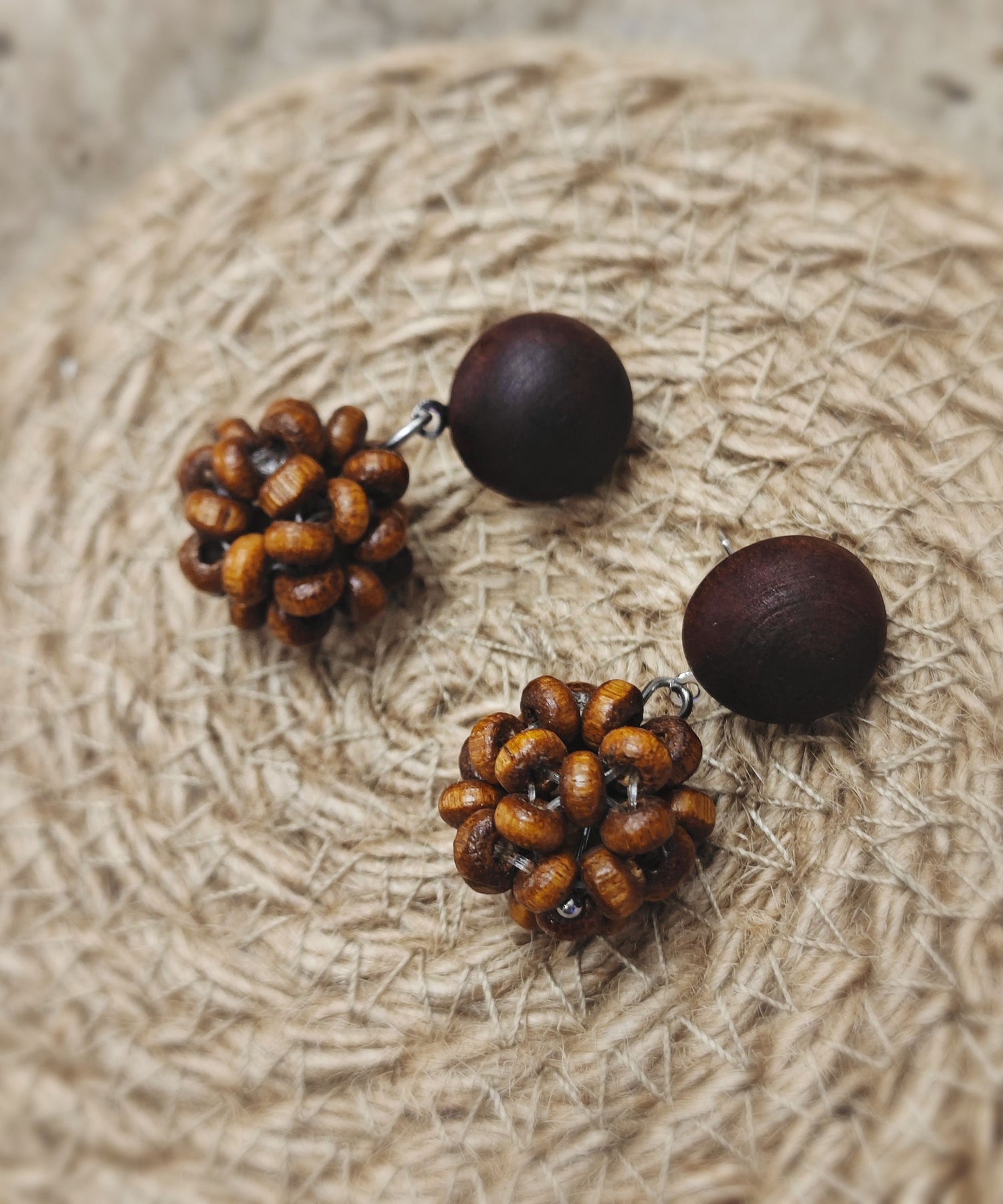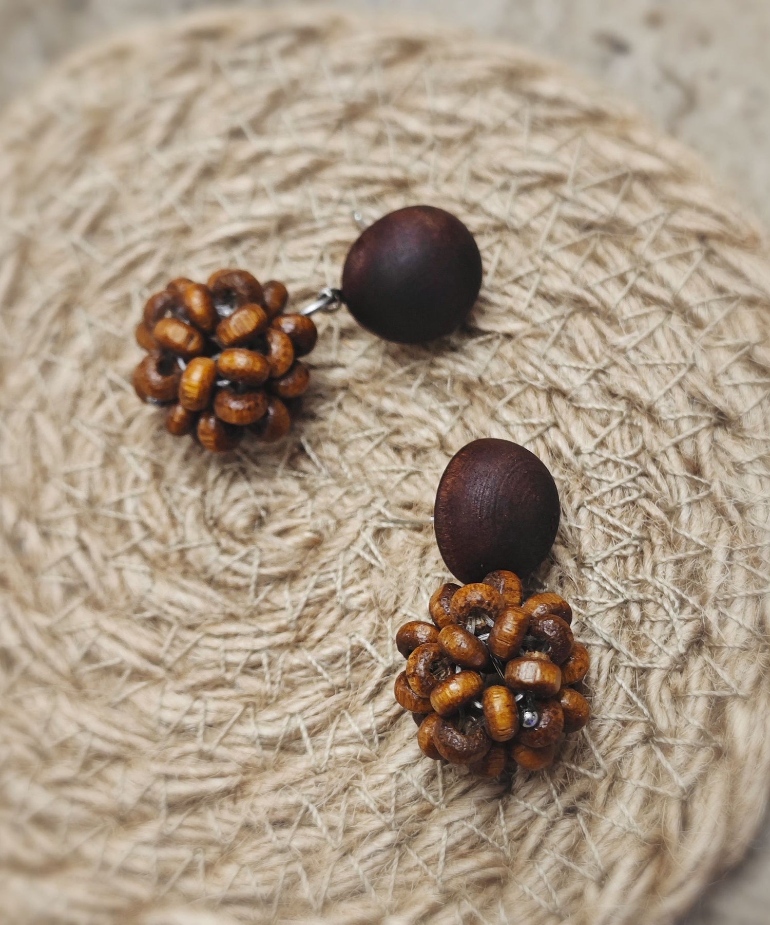 Vintage Brown Sterling Silver Pinecone Drop Earrings