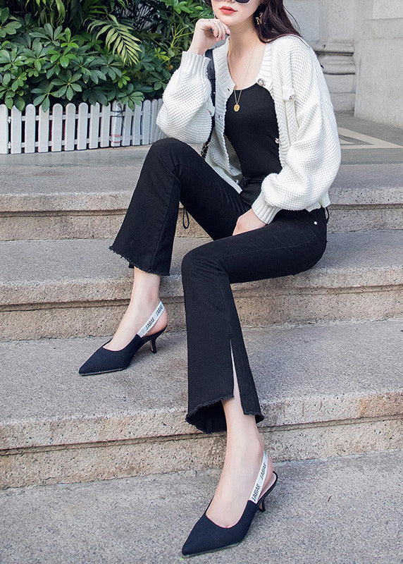 New Khaki Tasseled Slim Fit Denim Flared Trousers Fall