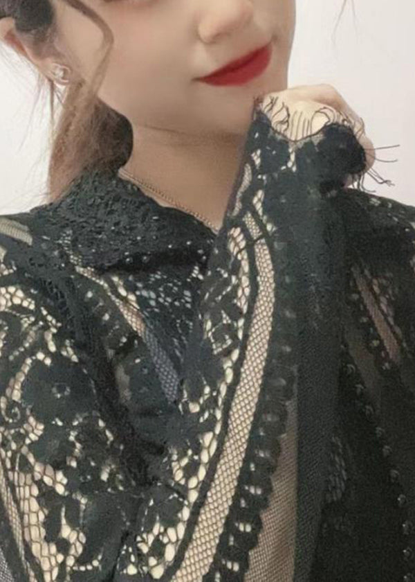 Beautiful Black O Neck Hollow Out Tulle Top Summer
