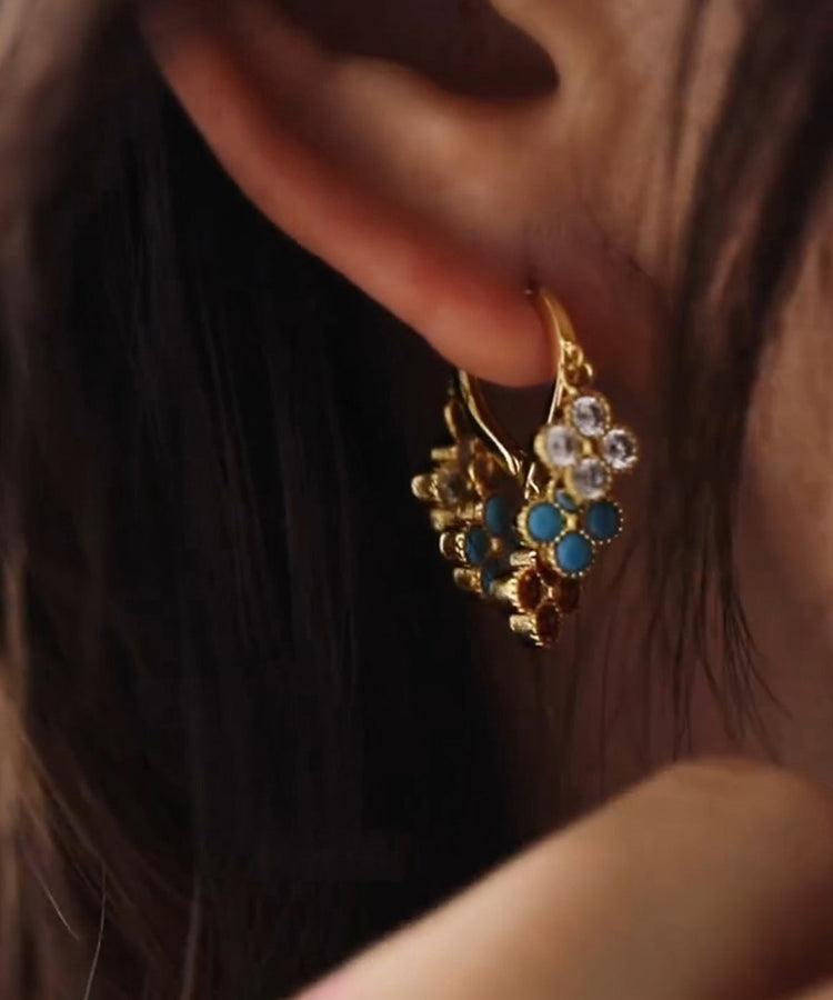 Fine Rainbow Copper Overgild Four-Leaf Clover Drop Earrings