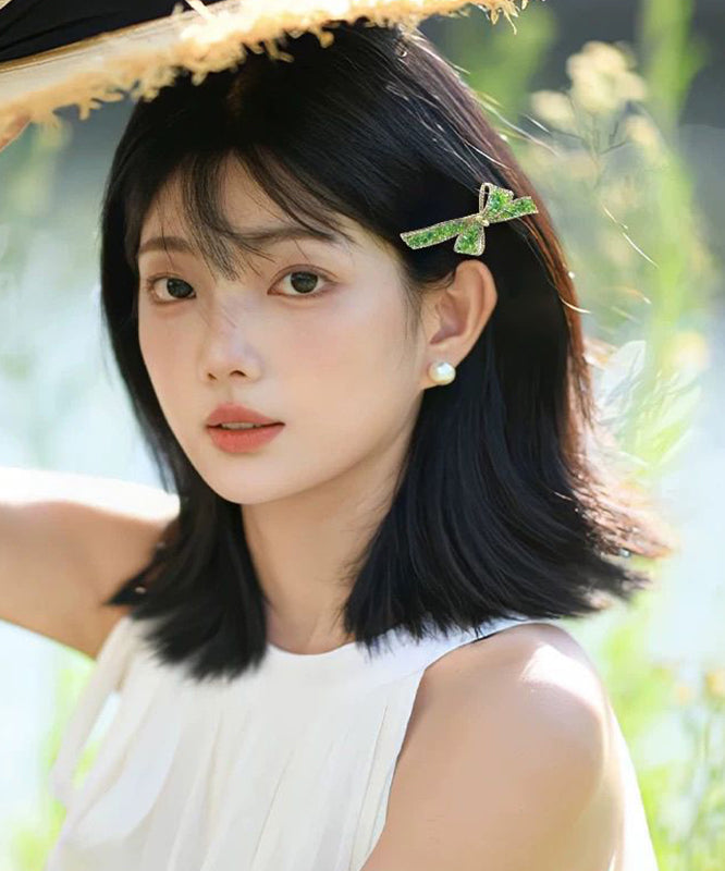 Fashion Green Alloy Zircon Crystal Bow Hairpin
