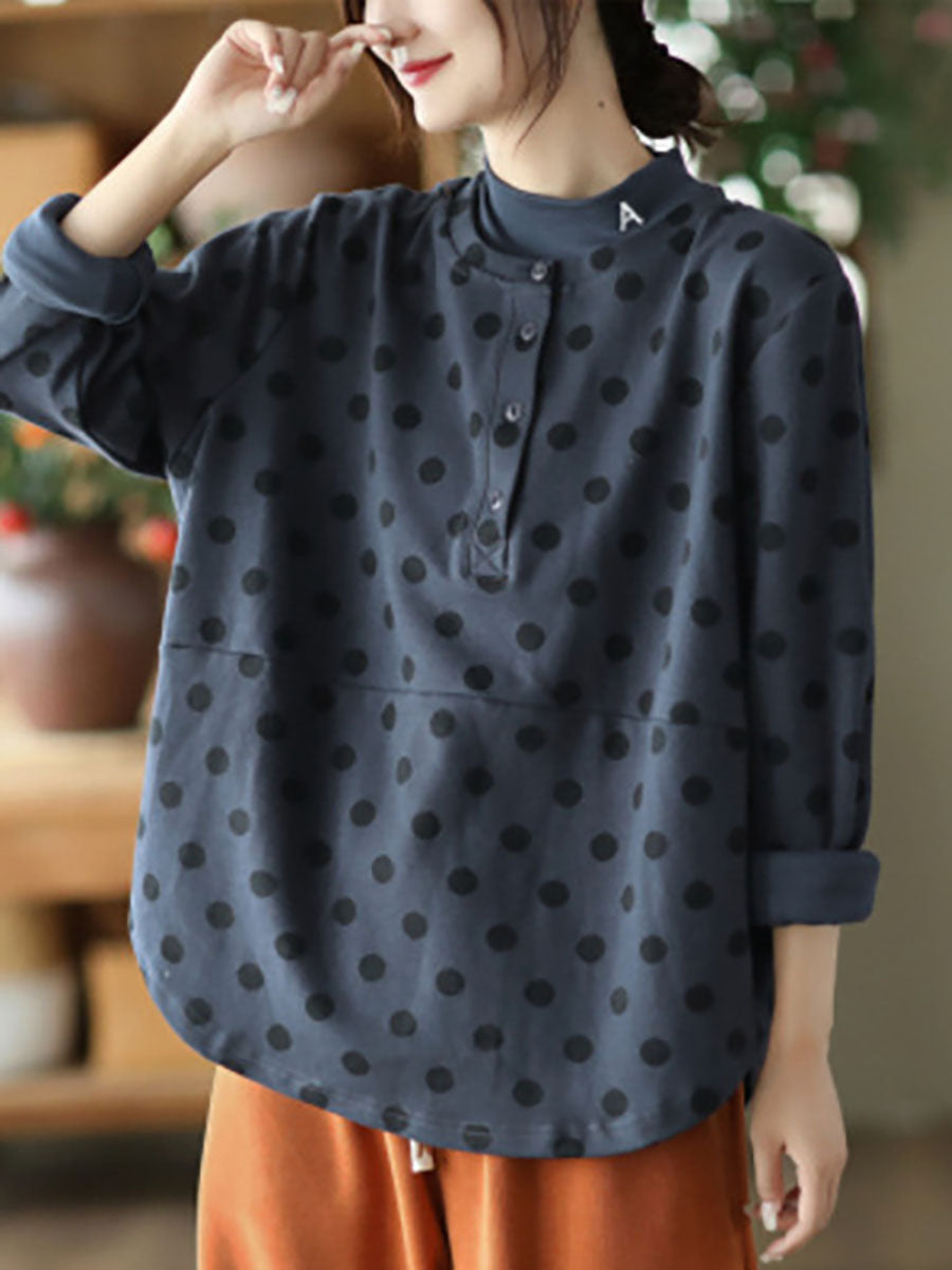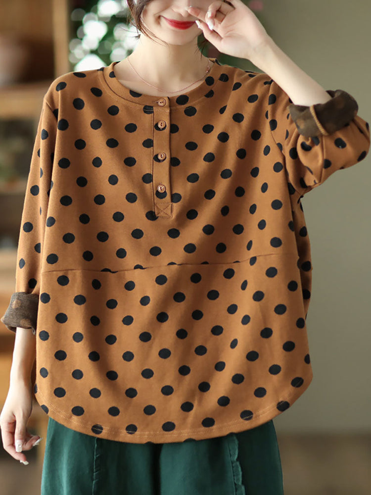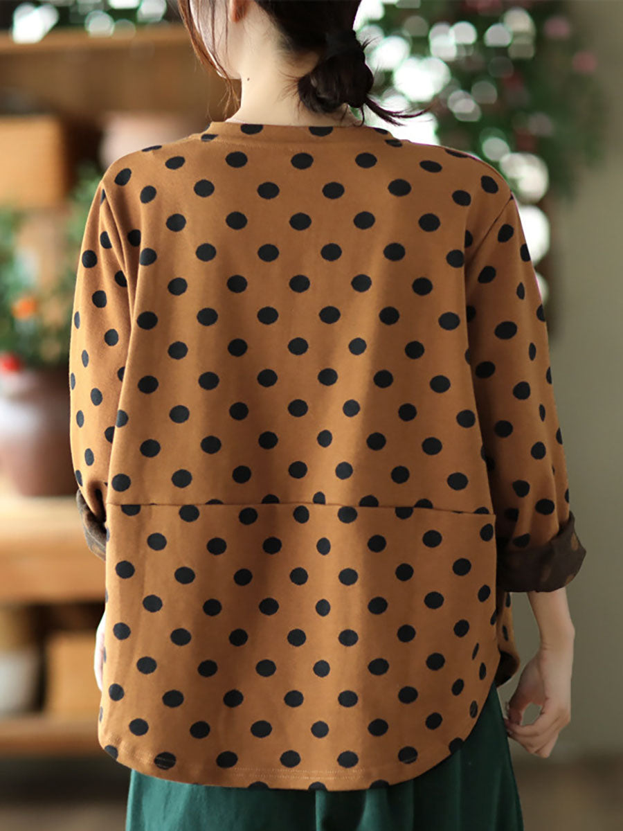 Vintage Dot Long Sleeve Pullover Casual Women T-Shirt