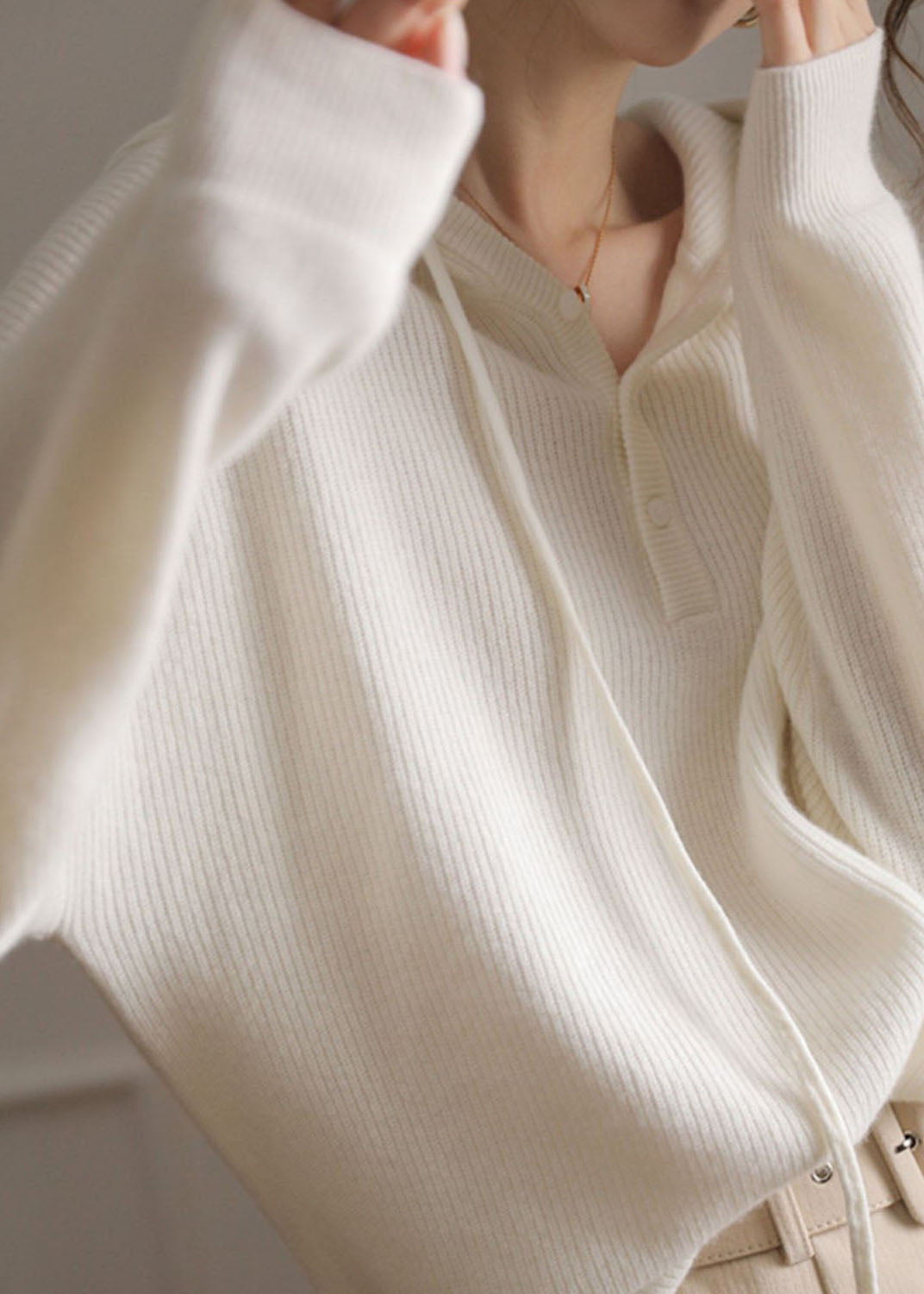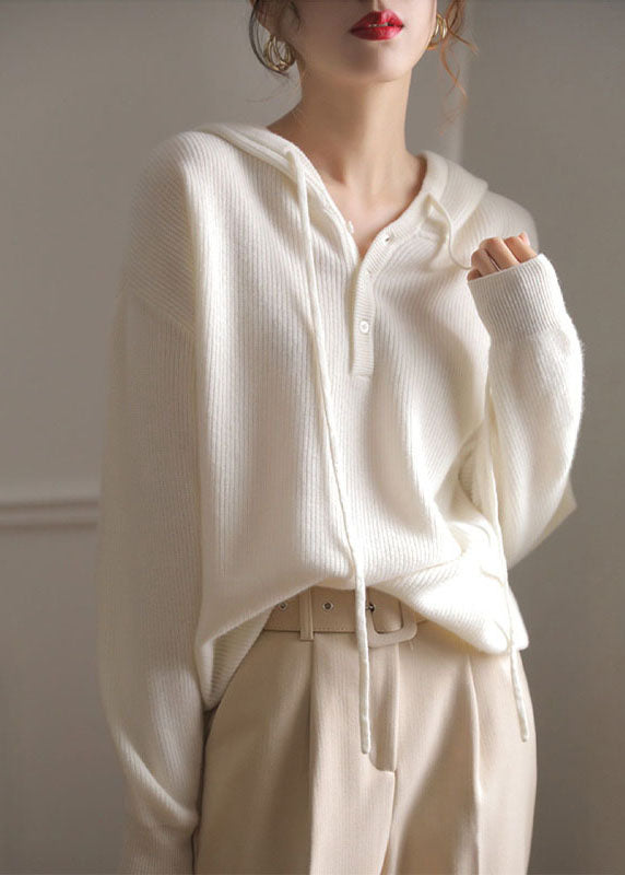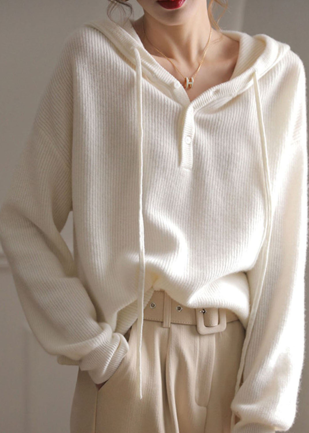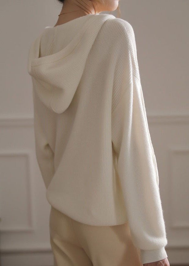 Vintage White Hooded Patchwork Wool Sweatshirts Spring