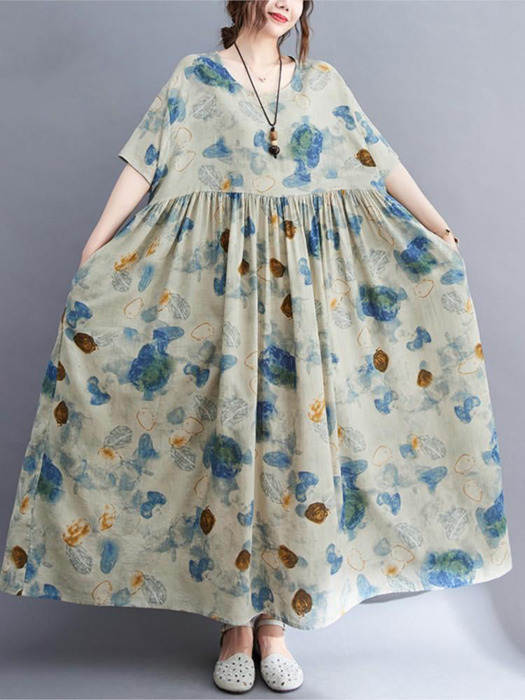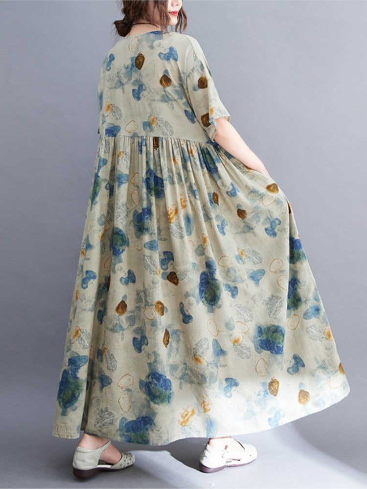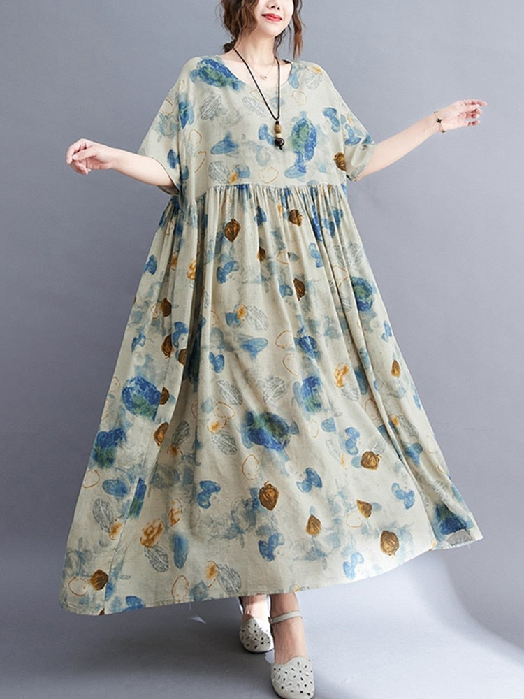 Irregular Print Spliced Plus Size Casual 100% Linen A-line Skirt