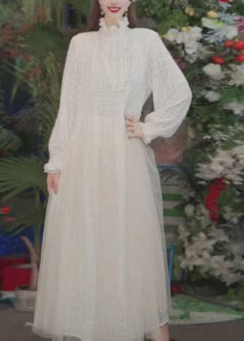 Fashion Pink Ruffled Tulle Patchwork Lace Long Dress Spring