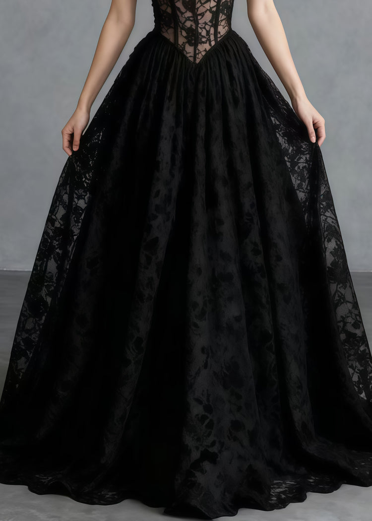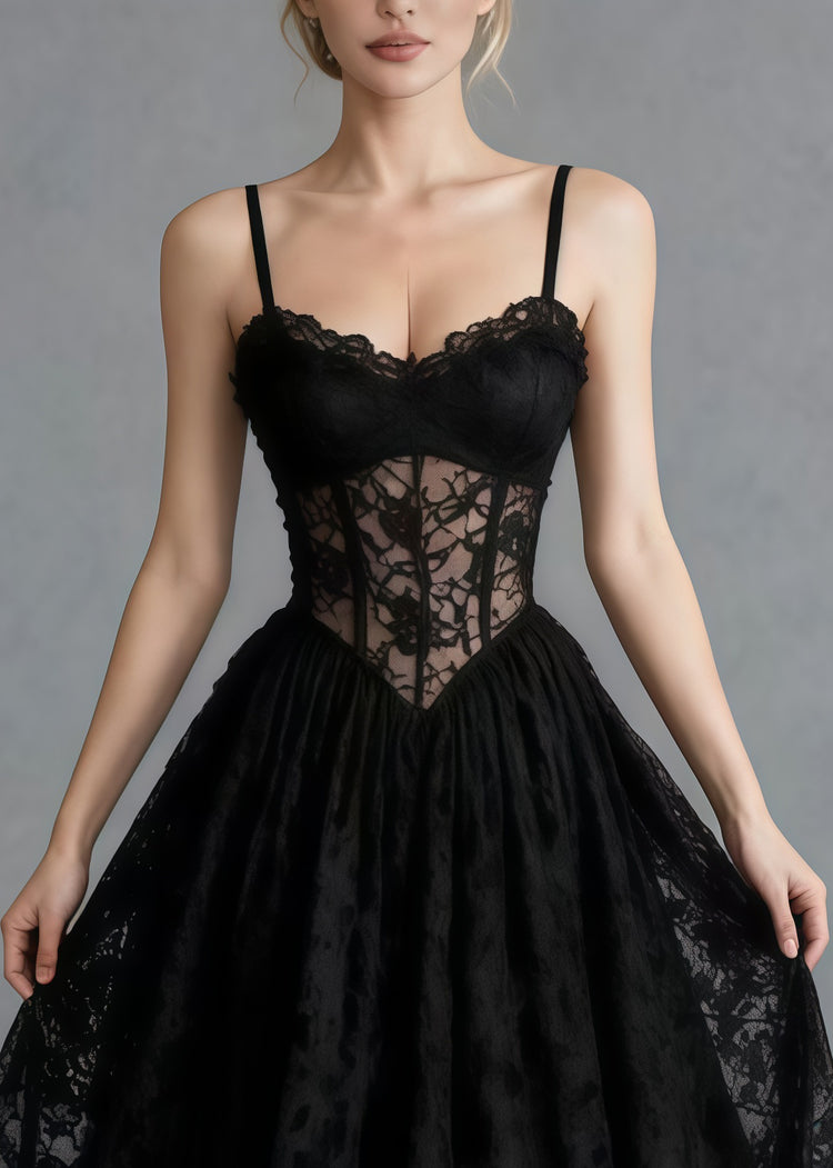 Beautiful Black Hollow Out Exra Large Hem Lace Cami Dresses Summer