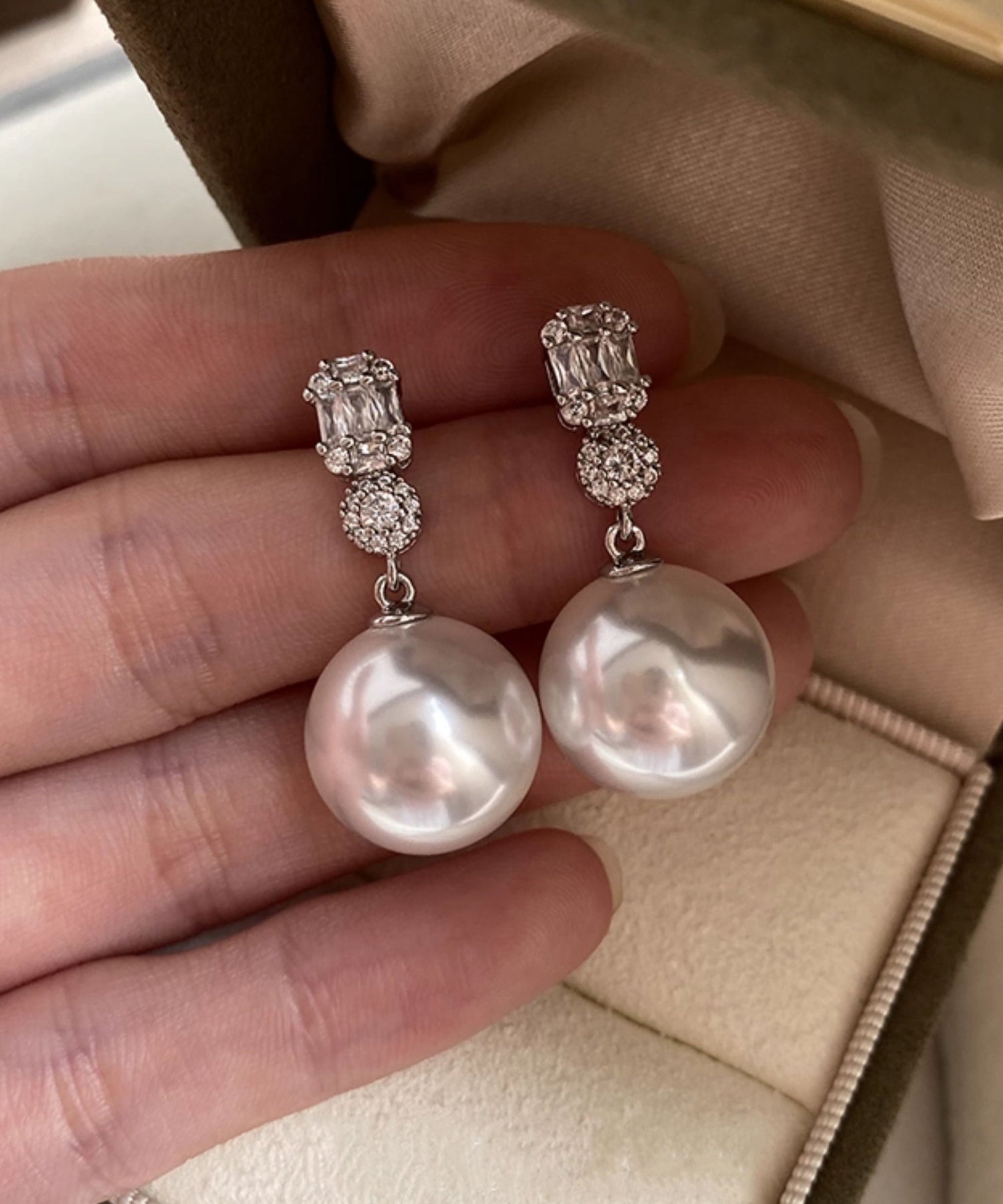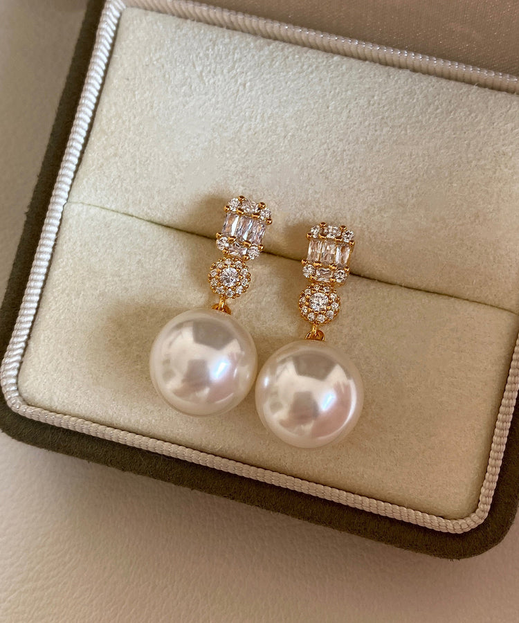 Light Luxury White Zircon Pearl Alloy Drop Earrings