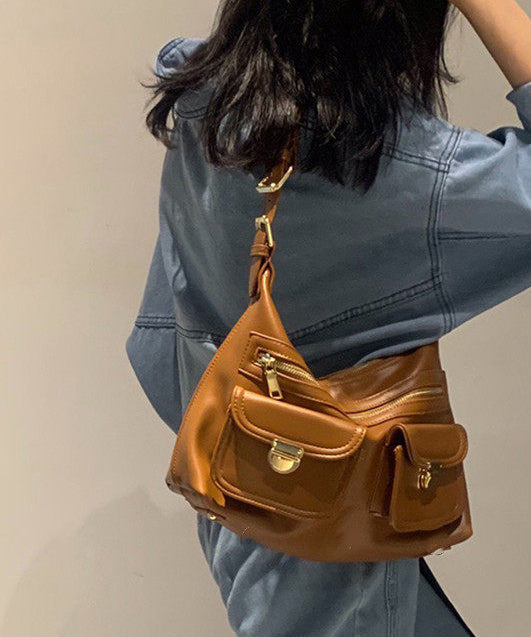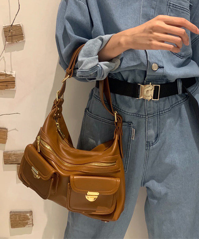 Handmade White Solid Durable Pockets Faux Leather Messenger Bag