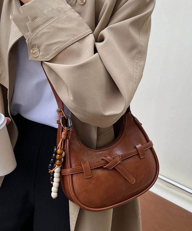 Unique Brown Tasseled Solid Durable Faux Leather Saddle Bag
