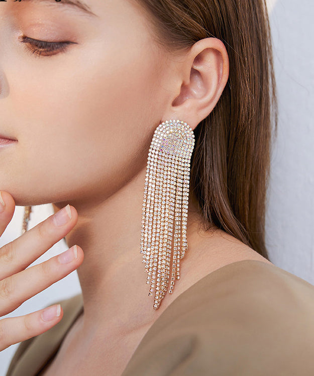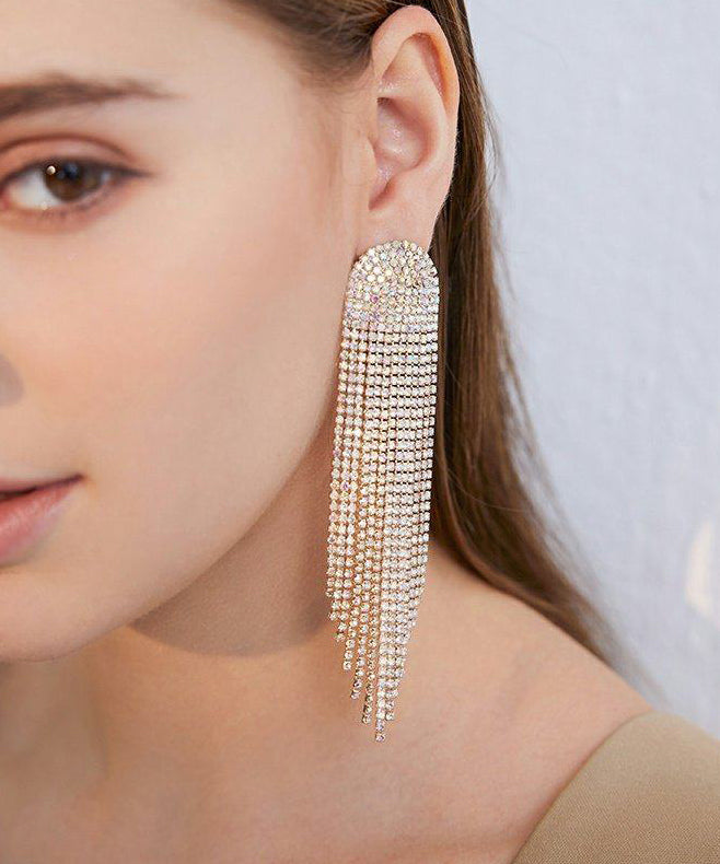 Beautiful Gold Zircon Tassels Silver Drop Earrings