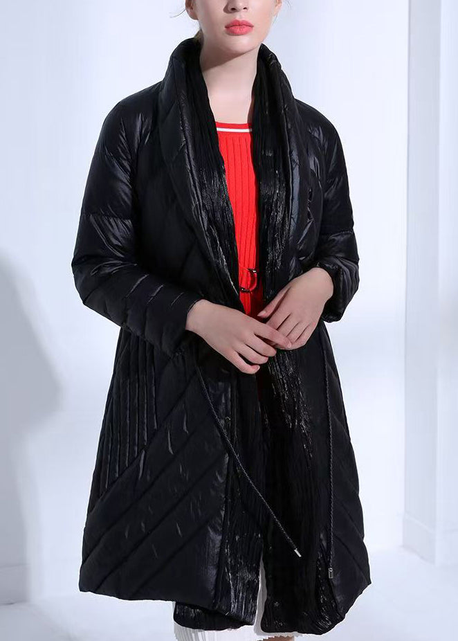 Loose Purple Wrinkled Tie Waist Pockets Fine Cotton Parkas Winter