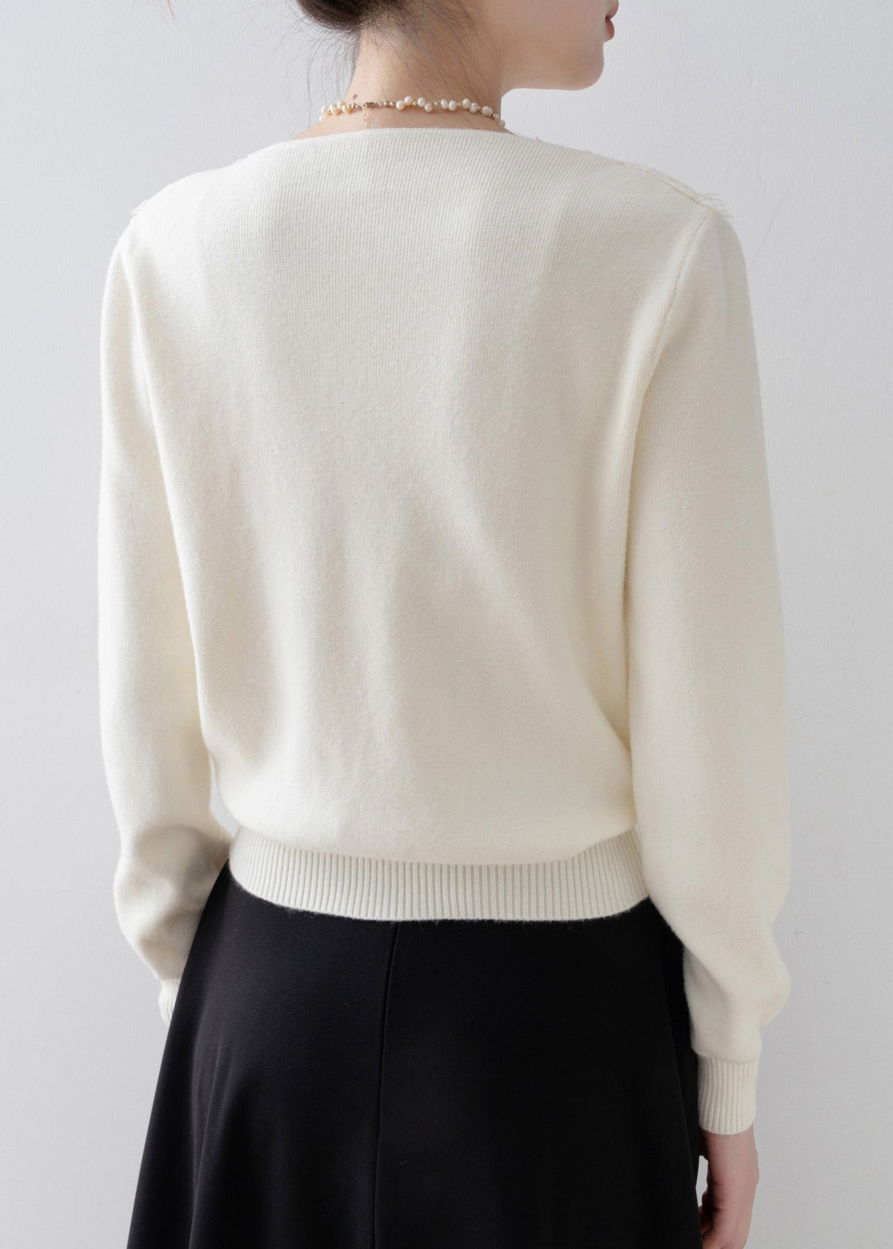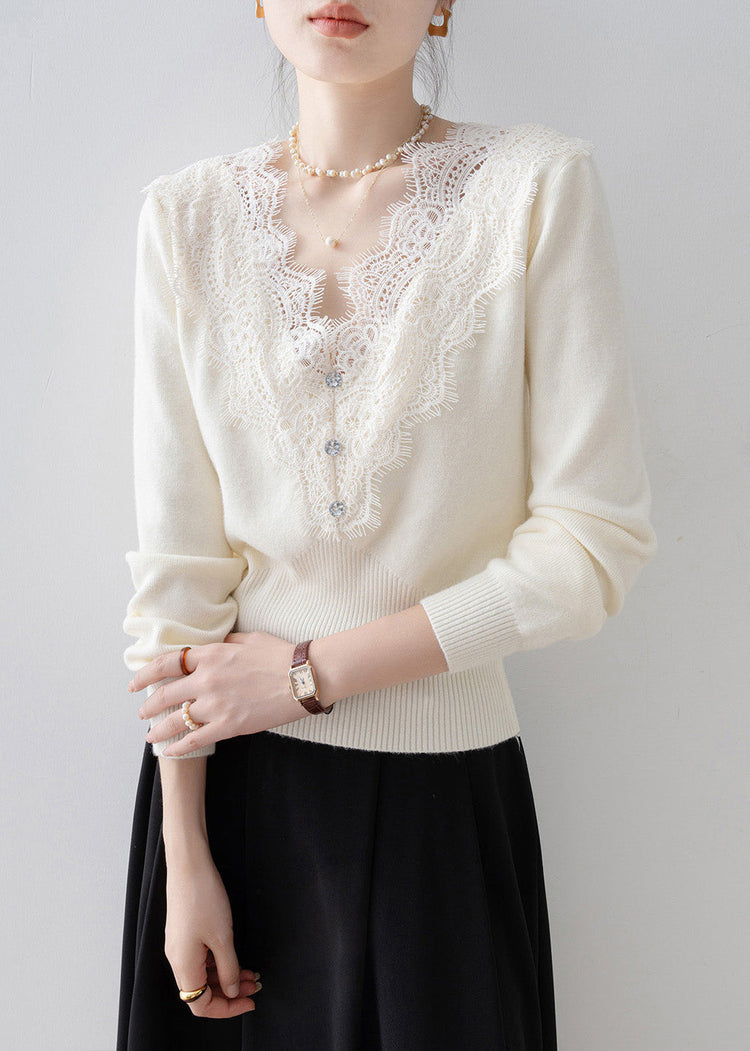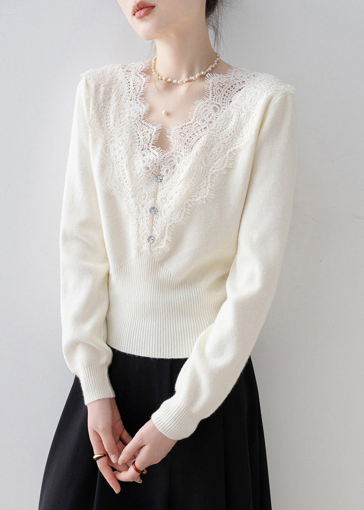 Modern Black V Neck Lace Patchwork Knit Sweaters Spring
